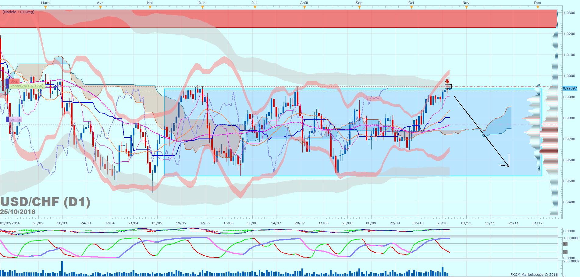 Les prochains jours sont à surveiller mais s'envisage de rentrer en position short en visant les 38,2% de fibos avec un stop vers 0,99700. la zone des 50% de fibo sera aussi à surveiller