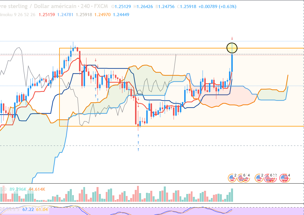 Meme shorter la cassure du range H4 est risqué, ca se trouve les prix iront chercher la kijun pour rebondir suite a la cassure de la ZE puis aller chercher la borne haute , bref c'est pas clair a mes yeux, donc je ne ferais rien.