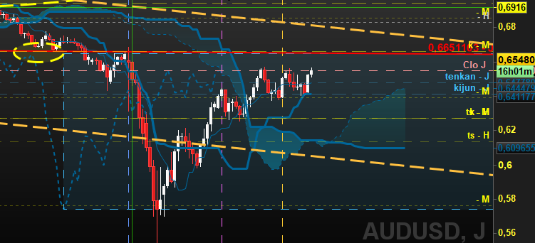 Bonjour à tous, effectivement en intraday, prévoir un plan short est envisgeable compte tenu du haut de range H4 que nous avons tous identifié, mais si vous "dézomezez en regardant le daily, et le mensuel, vous constaterez l'avalement haussier daily d'hier au contact de la kijun qui semble renvoyer les prix vers le nord. J'ai tracé un range daily avec la kijun mensuelle comme borne haute à 0.665. Les prix vont souvent chercher les S/R proches et ce niveau n'est plsu très loin. Il ne serait donc pas étonnant de voir les prix y monter. Ca n'engage que moi, mais c'est ce niveau que je considère comme niveau de short si signal il y a