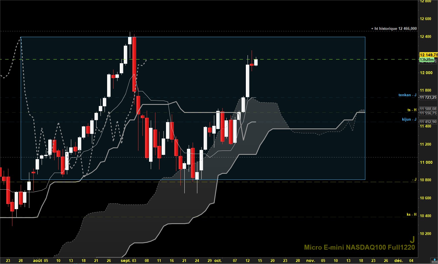 Les prix iront certainement chercher la kijun puis pourquoi pas le haut de ce qui peut être un range daily, mais si les prix y vont, je peux vous parier à coup sur les chartistes et permabear vont crier au loup concernant un double top daily.