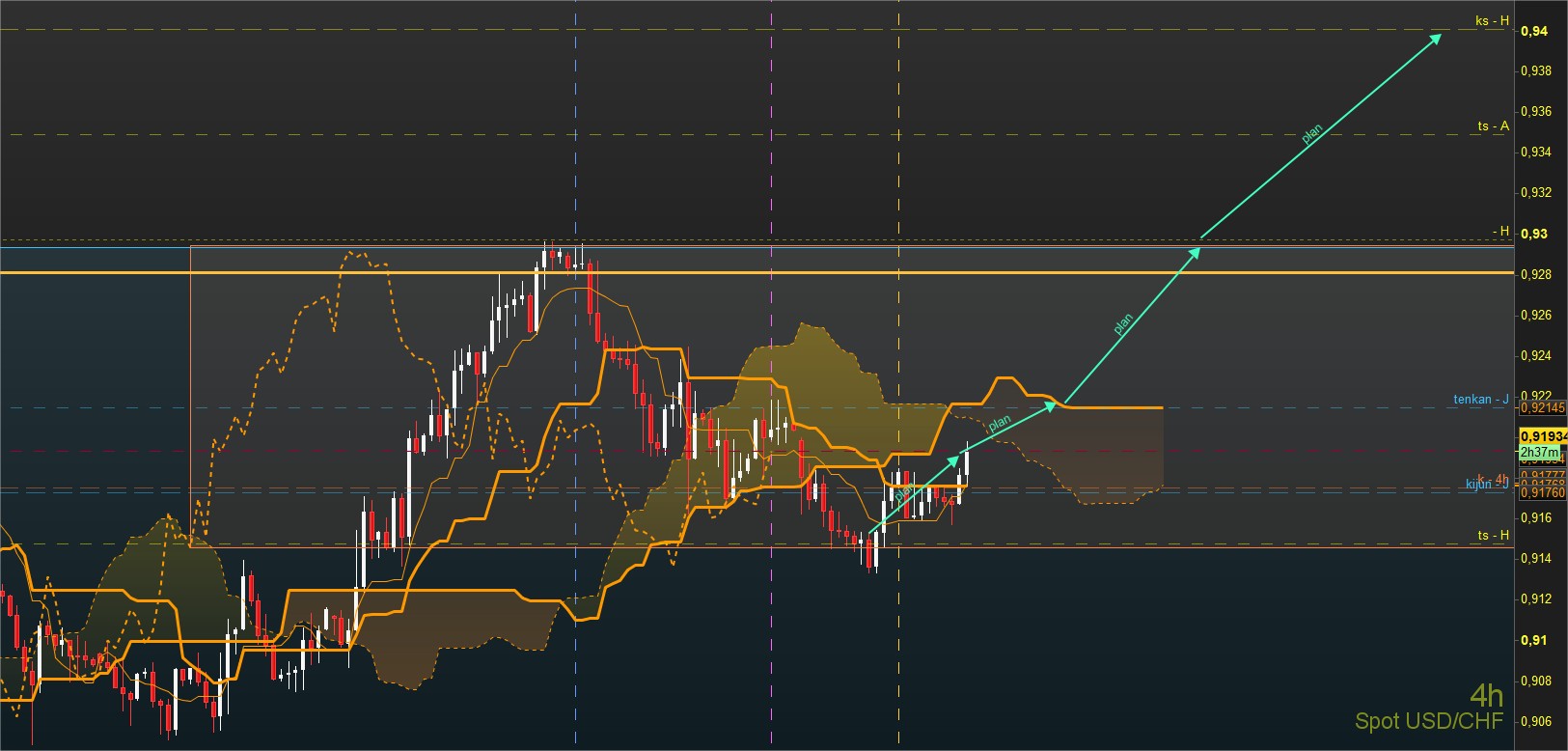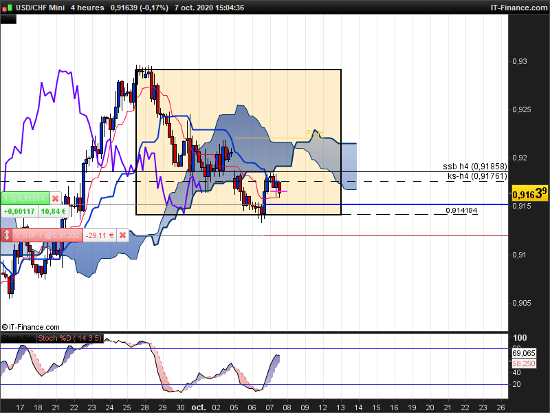H4 : Les prix sont en baisse kijun H4 étant était cassée, le DXY est en baisse également après l'ouverture des marchés US, les annonces de Trump doivent être derrière tout ça, plan de relance Us à l'arrêt pour le moment, cela déçoit pas mal de personne normal !)