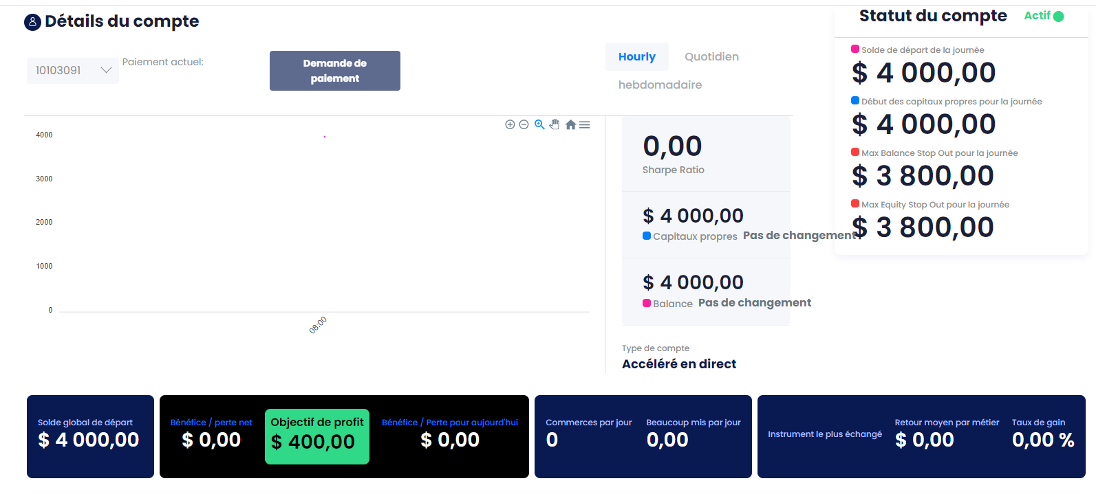 Du coup j'ai changé de formule et j'ai pris un compte sans évaluation avec 2000 USD de capital pour un coût de 99 USD, l'avantage est que je peux trader de suite en réel et prélever mes gains toutes les semaines, l'inconvénient est qu'ils récupèrent 50% de mes bénéfices, l'autre formule c'était 15%.