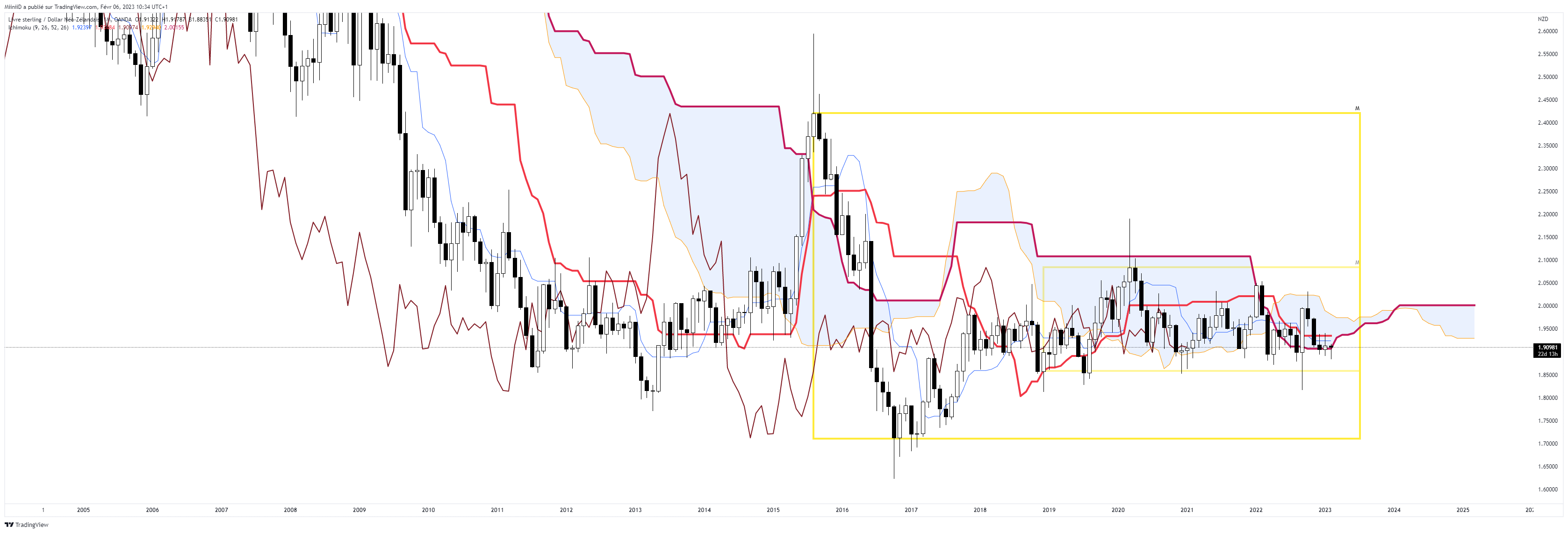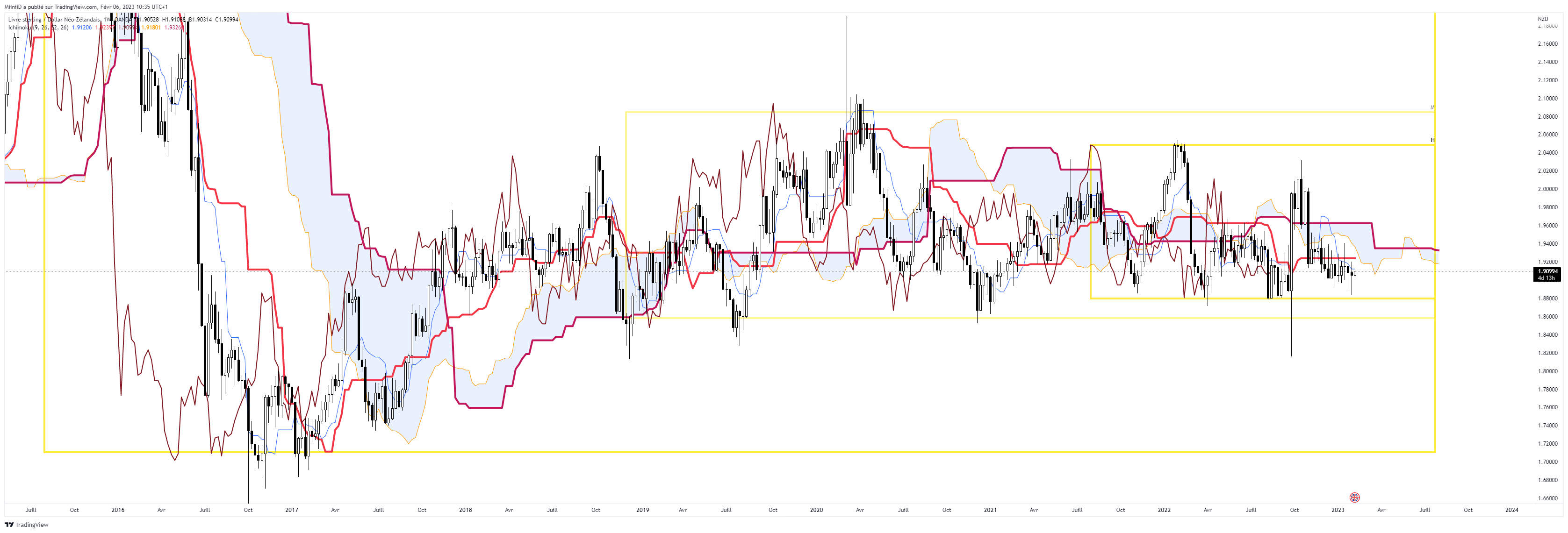 WKLY : on vient de retracer 50% de la dernière hausse avec un plat Kijun et SSB en support