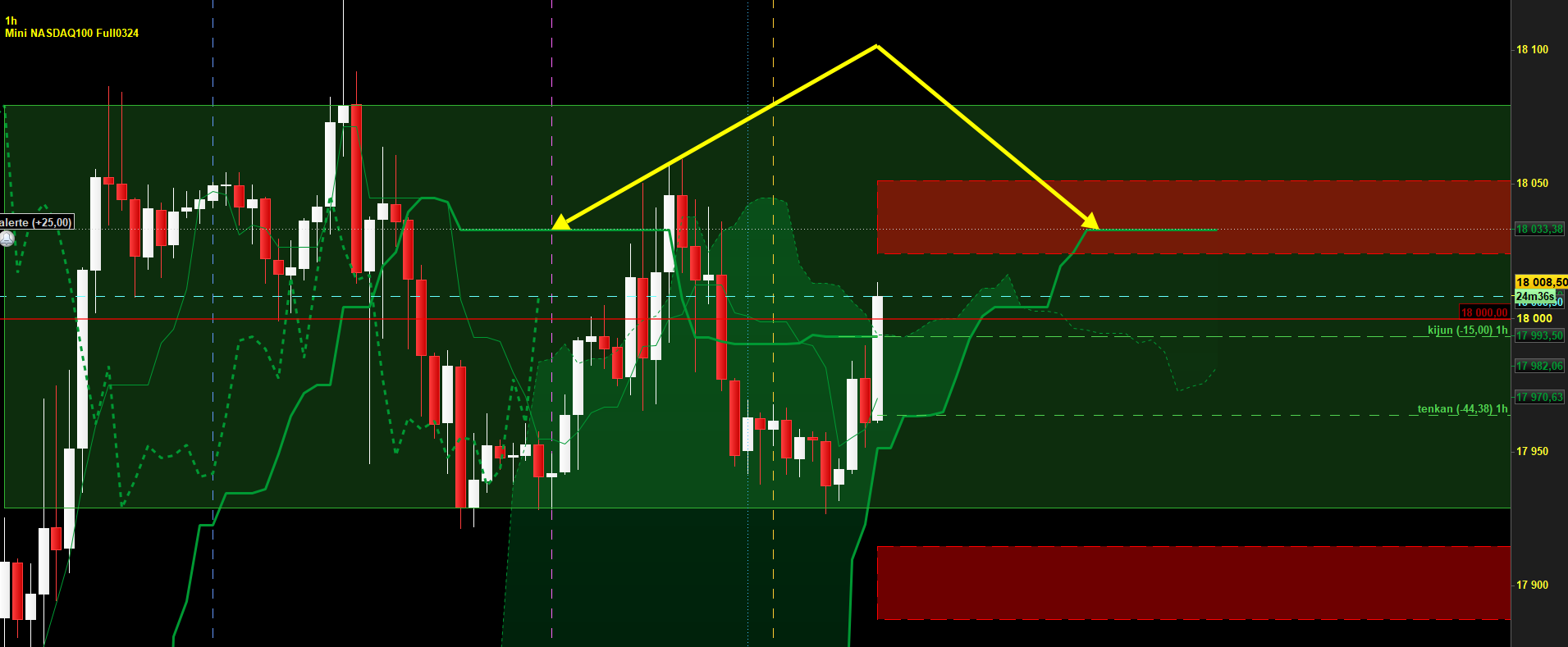 Donc en plan swing, on pourrait surveiller la cassure de ce range, mais en intraday, un up en début de journée est fort probable