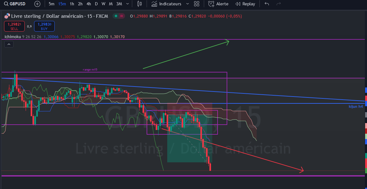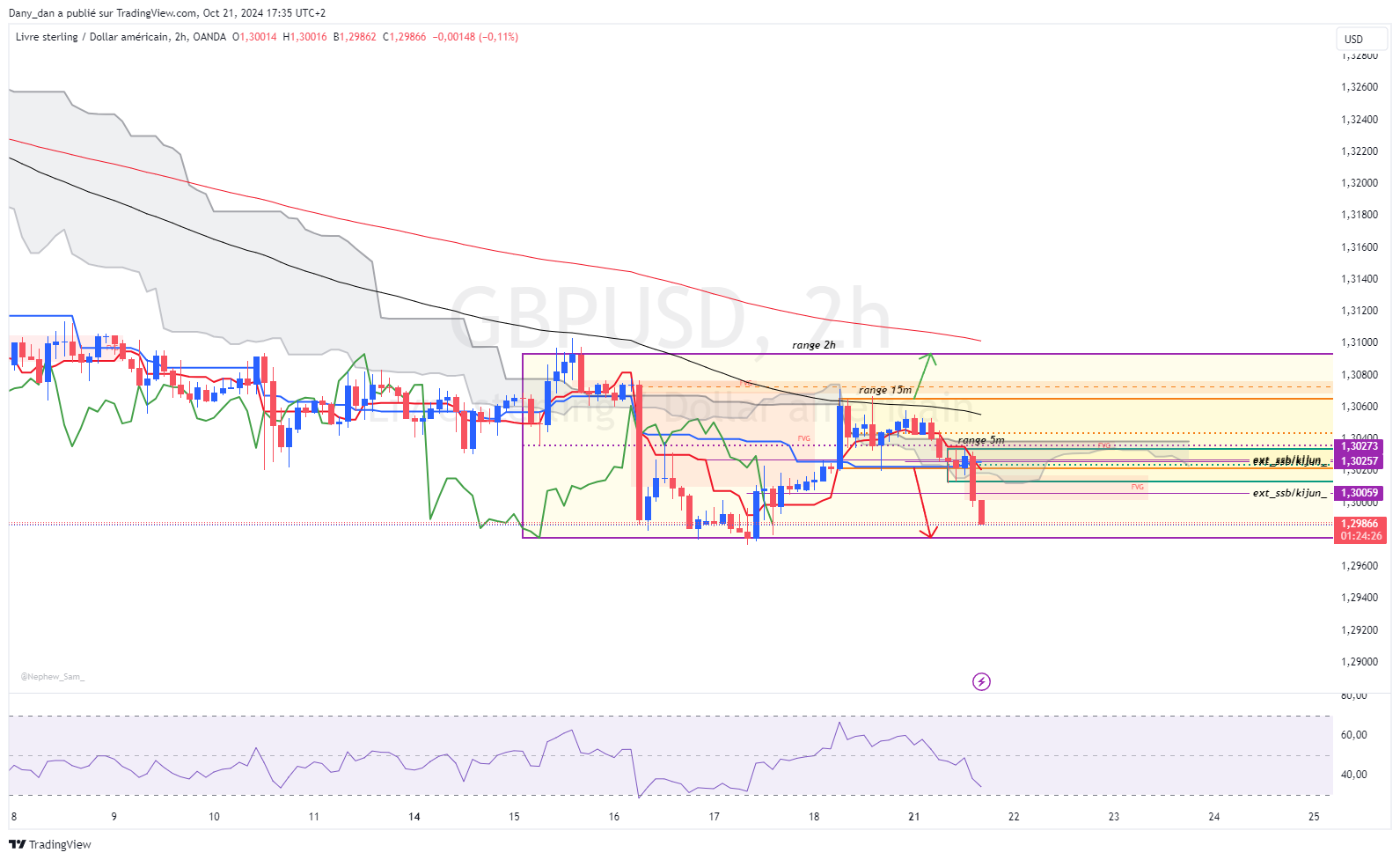 - Petit range H1 qui semble difficile à trader pour un ratio de 2 mais j'attends sont potentiel break-up qui correspond également à la Ks H4 pour long. Une validation de la bougie H8 et daily me semble nécessaire pour maintenir la position.