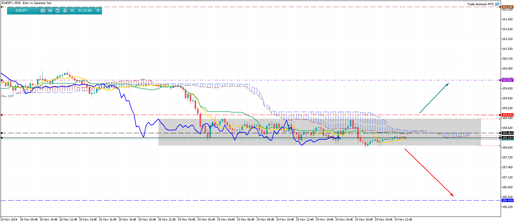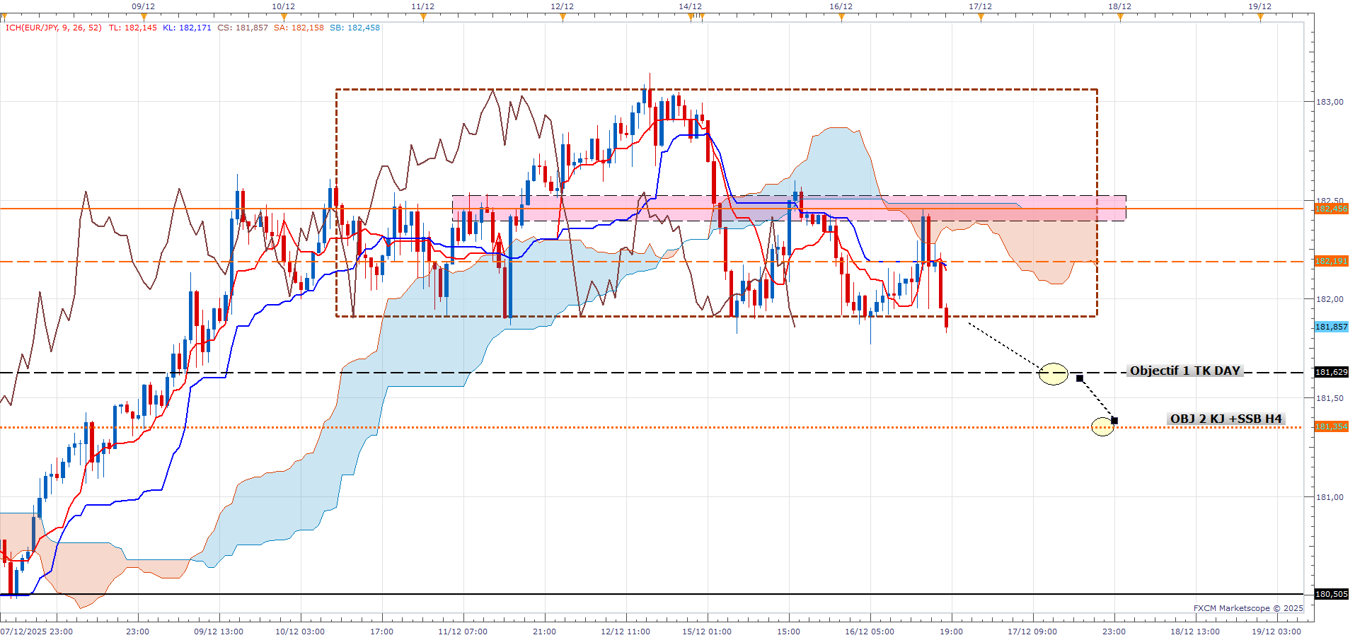 J'attend aussi en H1 la formation d'un range dont la BHRH1 pourrait être la kijun H4. Je m'attend à un rebond à la baisse vers l'hypothétique BBRQ que j'ai prè-matèrialisée.