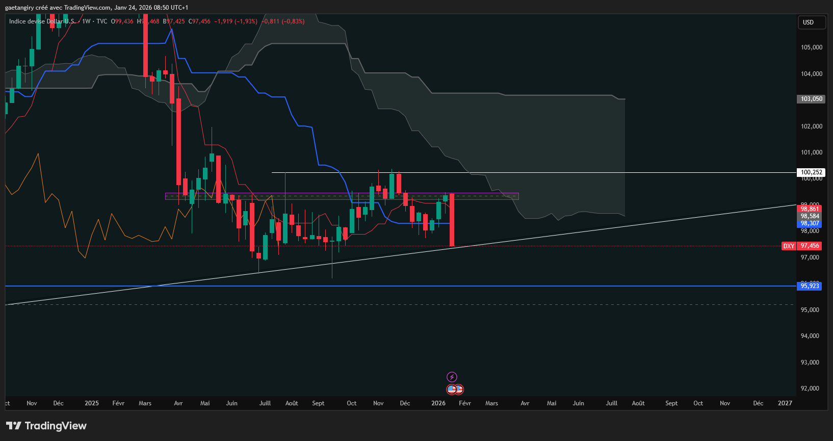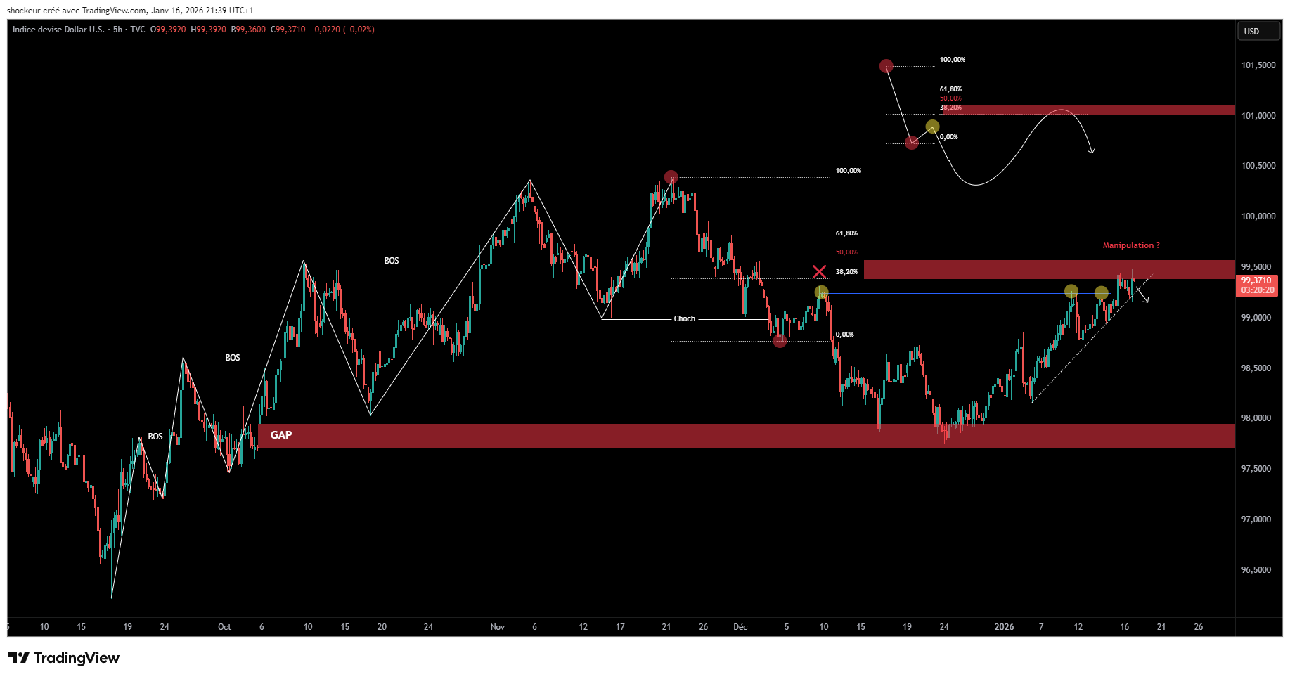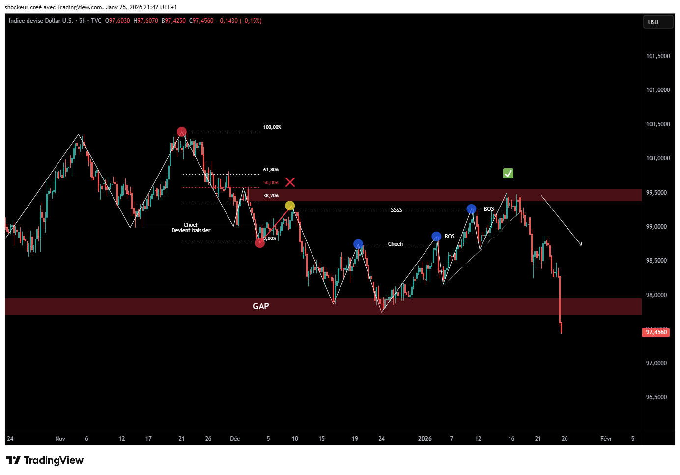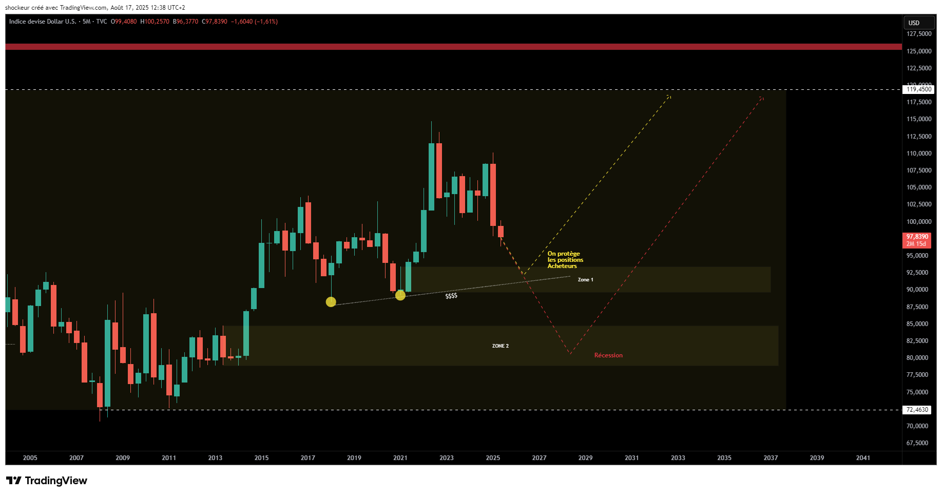 Pourquoi mon schéma est il baissier pour du long terme : Politique de Trump sur le dollar --> L'affaiblir.