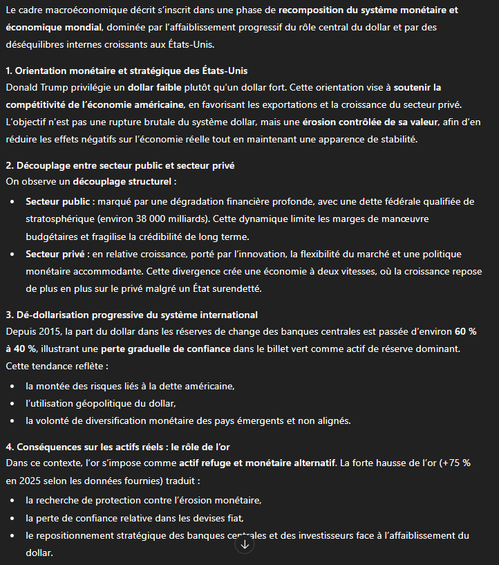 Bref Tchatgpt explique très bien l'faiblissement long terme potentiel du dollar