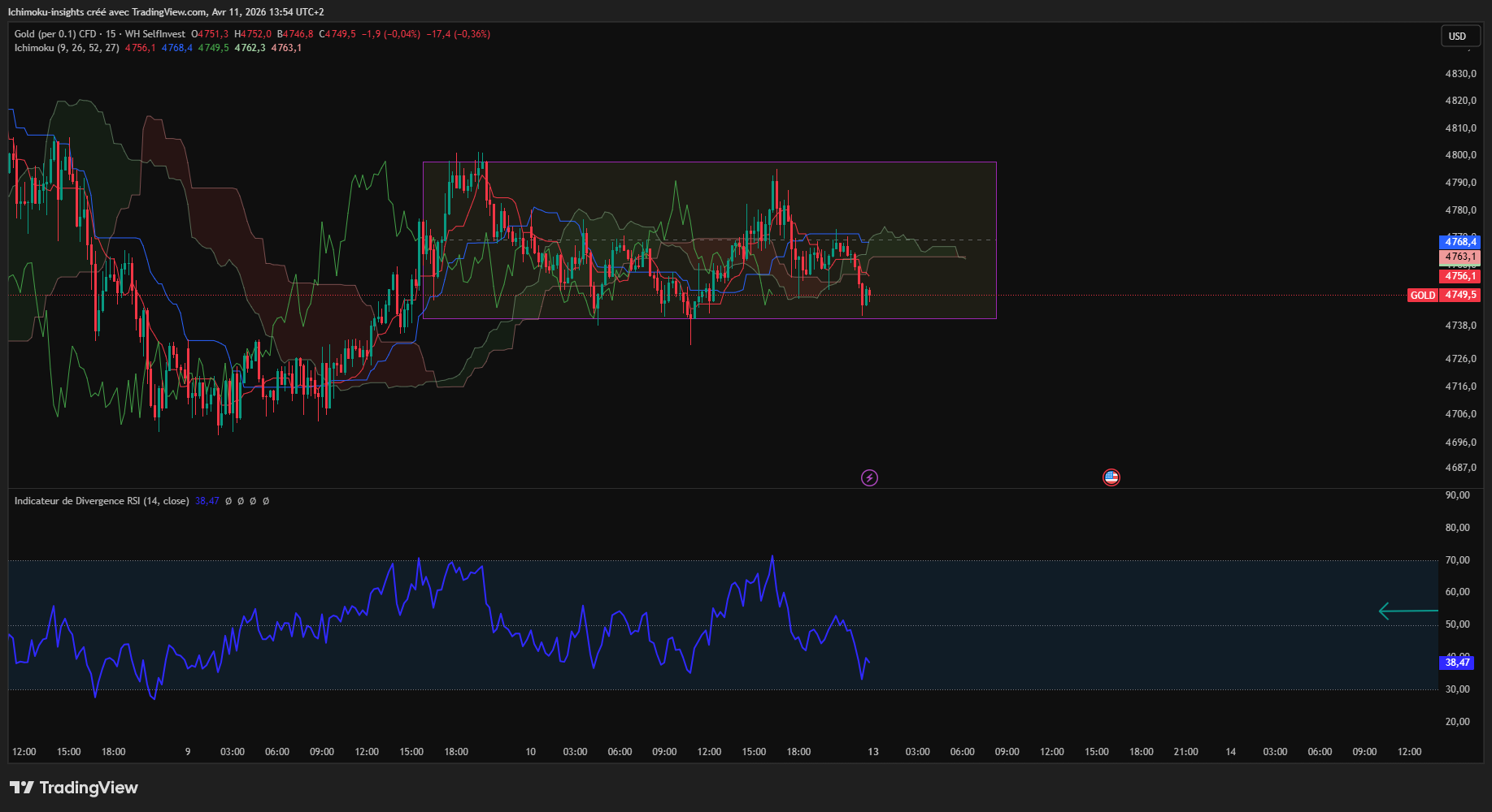 NB/ Ceci n'est que le reflet de mon interprétation globale du RSI couplé avec ichimoku en fonction de mon expérience perso. Et attention au phase de range.