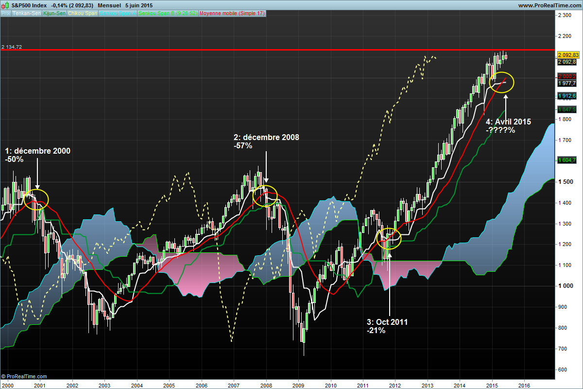 Un signal peut être en mensuel: la tenkan croise vers le bas le MMA 24 (désolé MMA17 c'était une erreur de ma part)