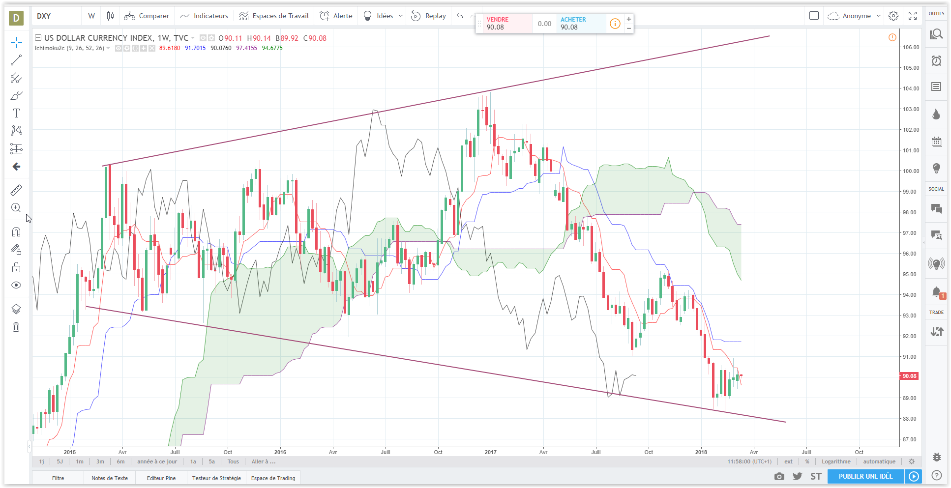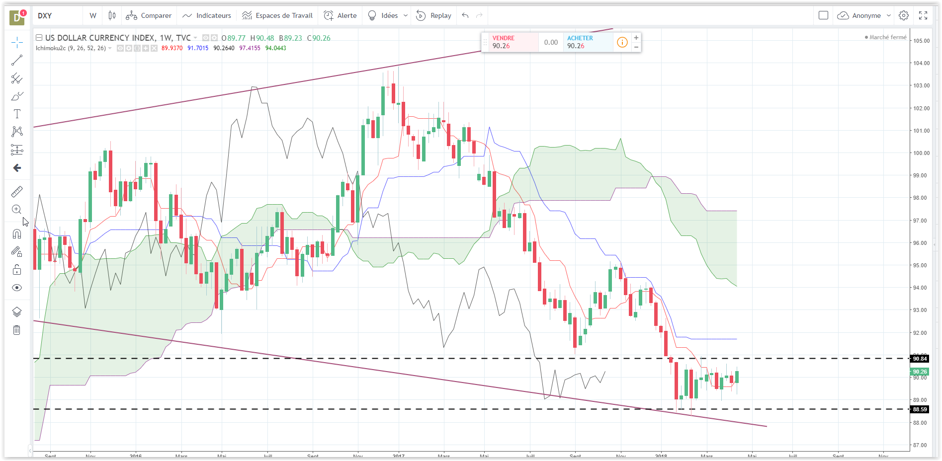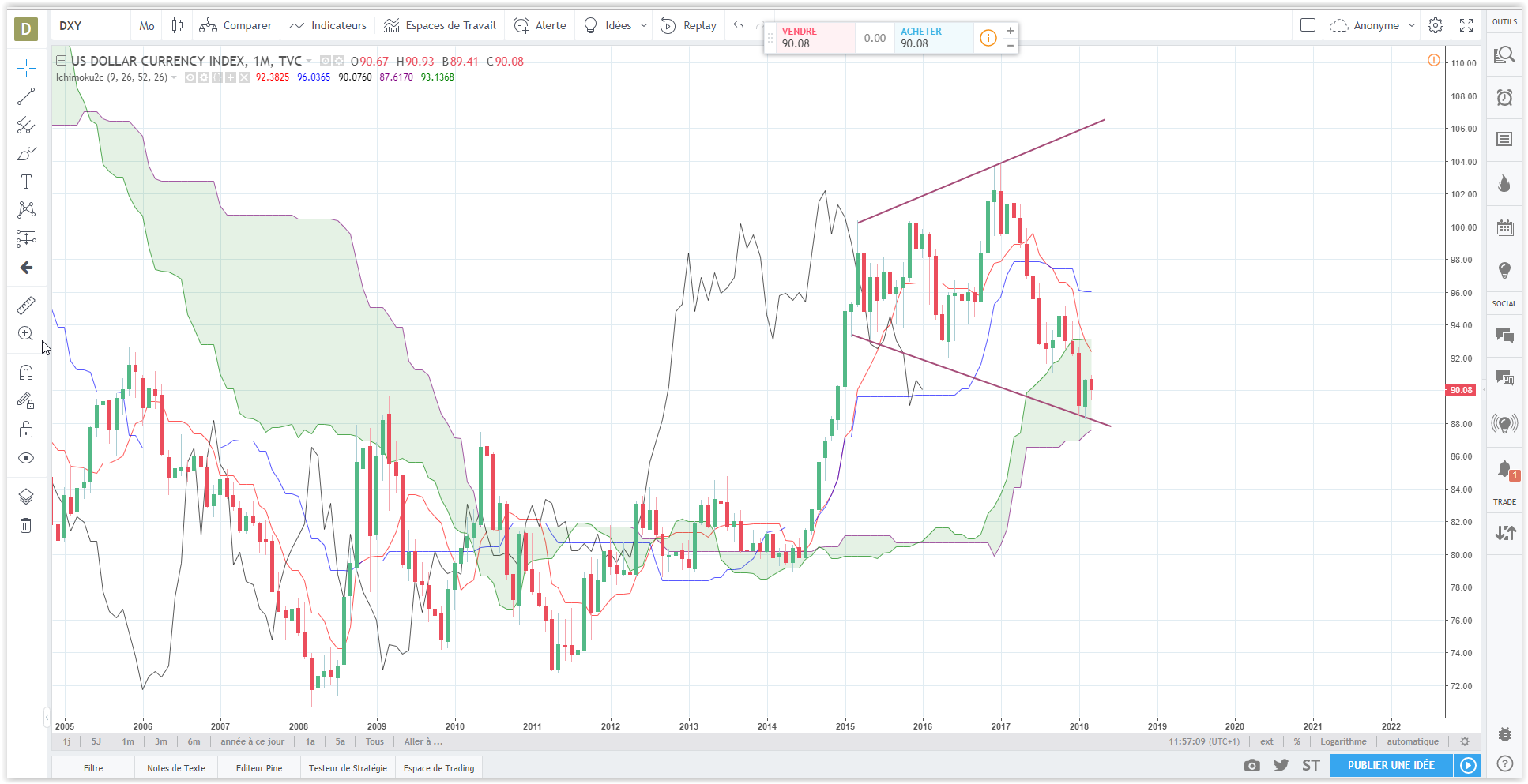 Mon analyse à l'approche de fin de mois en MTF long terme, tout est sur le graphe D1 avec ichi M1 ,W1 et D1.