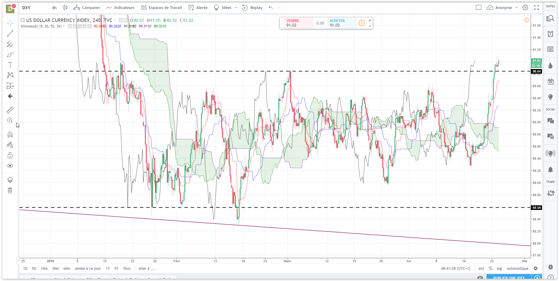 En H4, le cours rebondit sur le Kumo et un Twist est peut être en préparation.