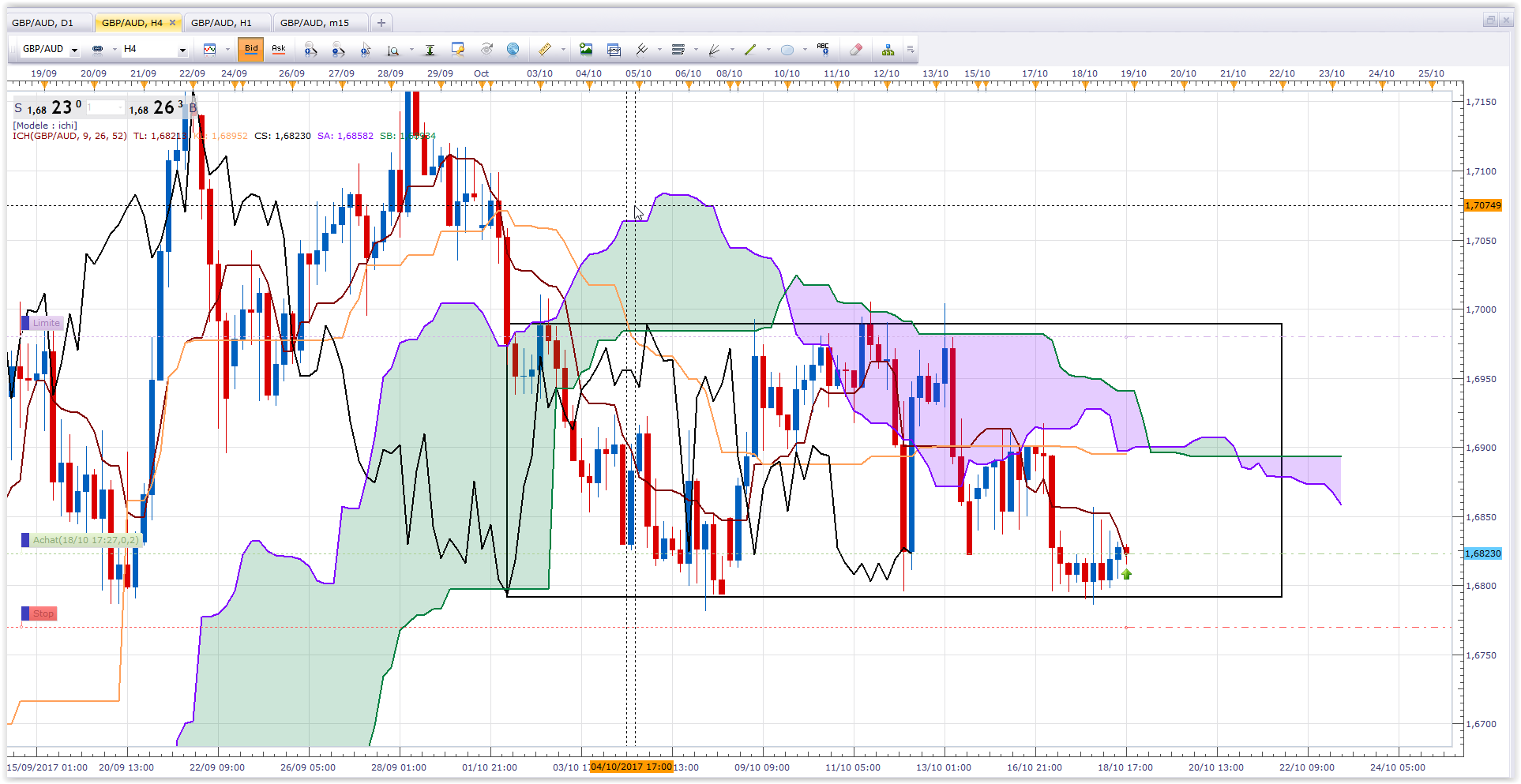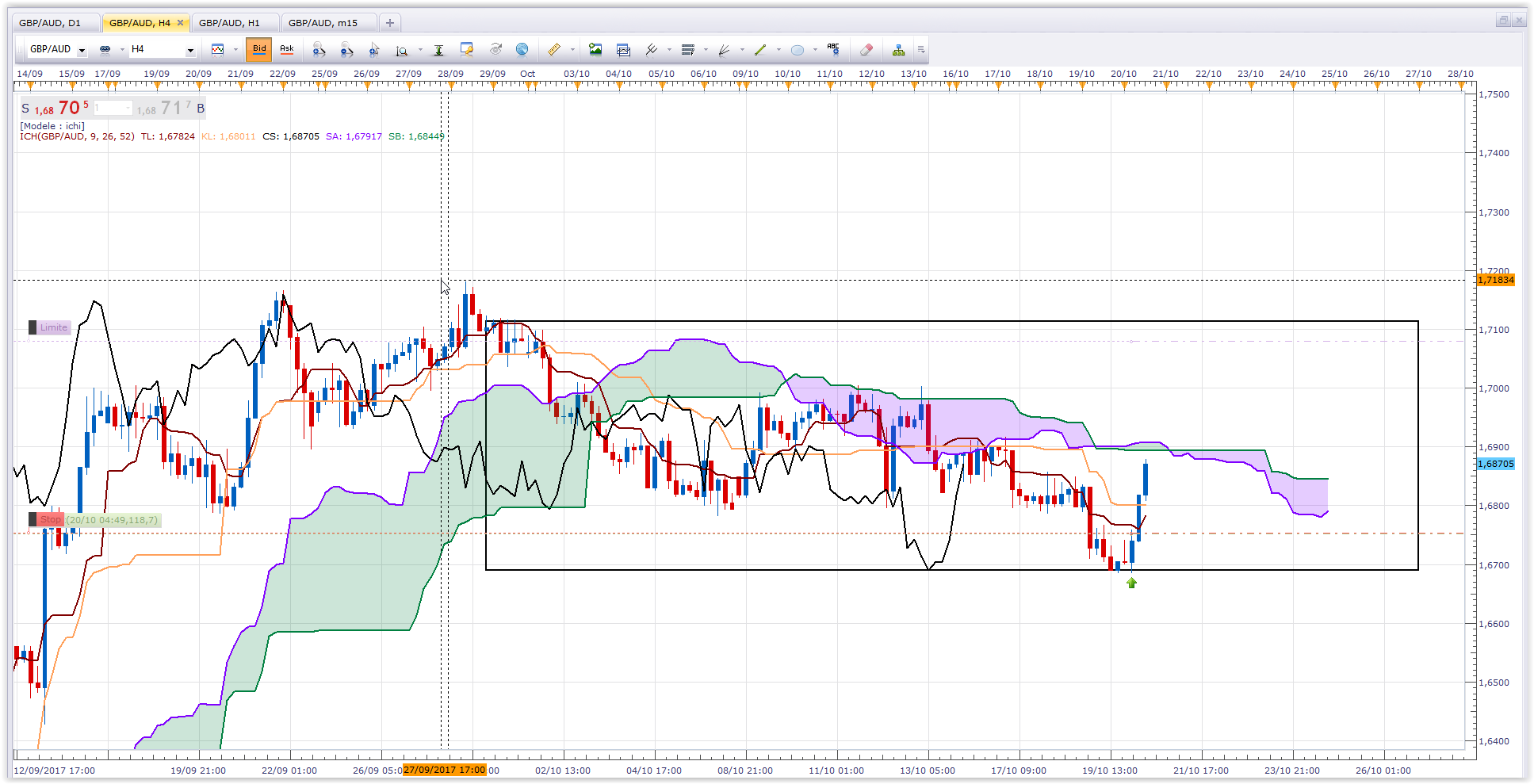 En H4, pour moi, il y a un truc nerveux et bizarre, mais pas de range. Les lignes de l'ichimoku sont baissières.