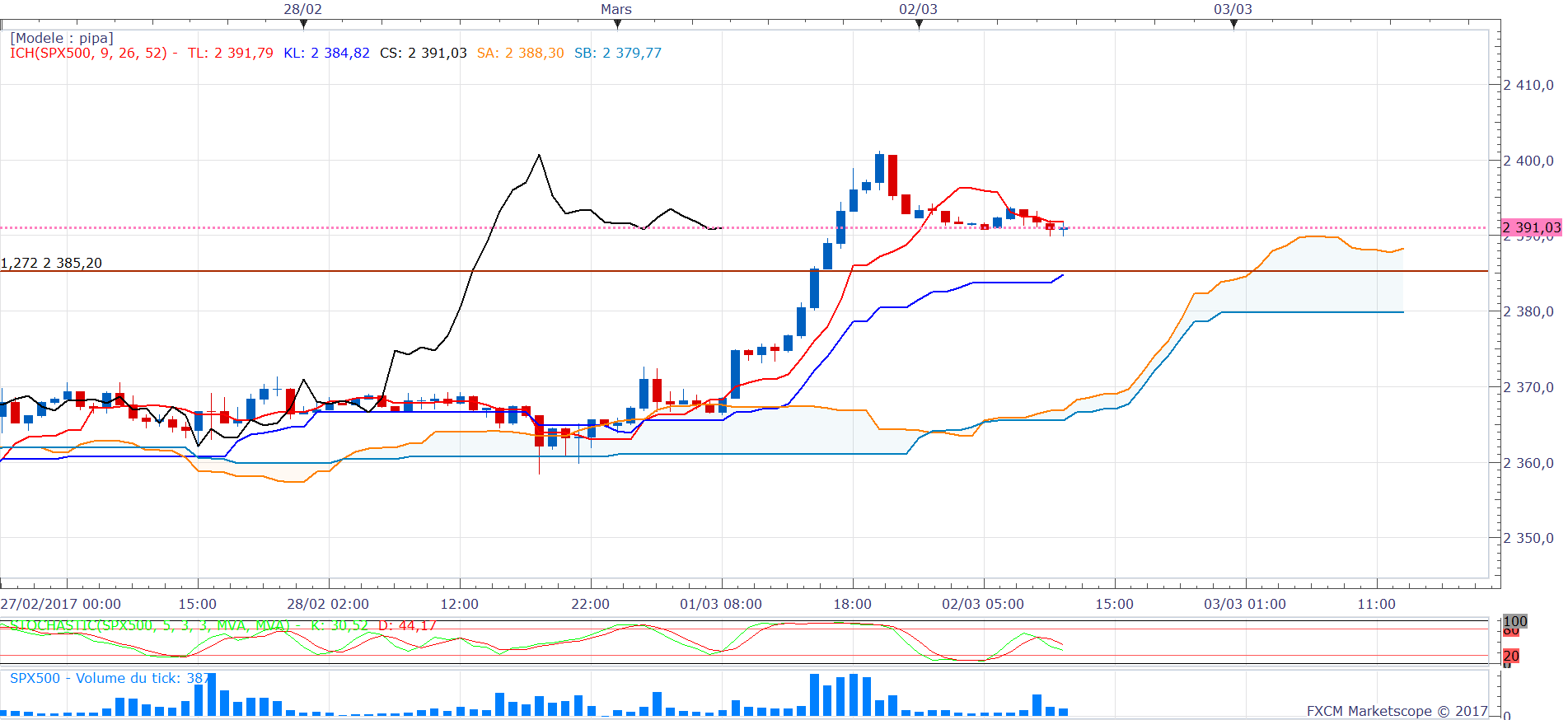 http://www.ichimoku-kinko-hyo.info/blog ... -haut.htmlEn propos liminaire, je tiens à préciser qu'il s'agit d'un point de vue de swinger. J'ai l'habitude de garder des positions très longtemps. De plusieurs à plusieurs semaines / mois pour les CFD à plusieurs années pour mon PEA. Ce que je dis n'empêche en rien d'acheter l'actif en intraday évidemment. Par ailleurs, j'ai une analyse polysystème. Je ne m'arrête pas à ma seule connaissance de l'ichimoku. J'ai acquis des connaissances auparavant, qui valent ce qu'elles valent, peu importe, mais qui m'éclaire quand je manque de données.