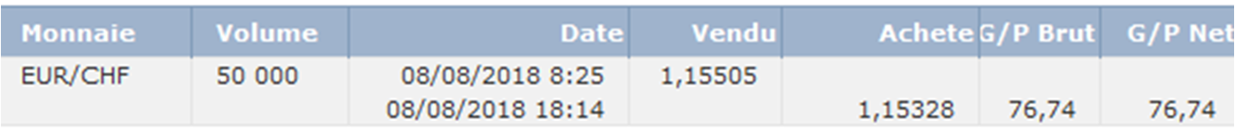 J'ai tradé 50K d'EURCHF chez FXCM, j'ai empoché 76.84€ (Brut = Net)