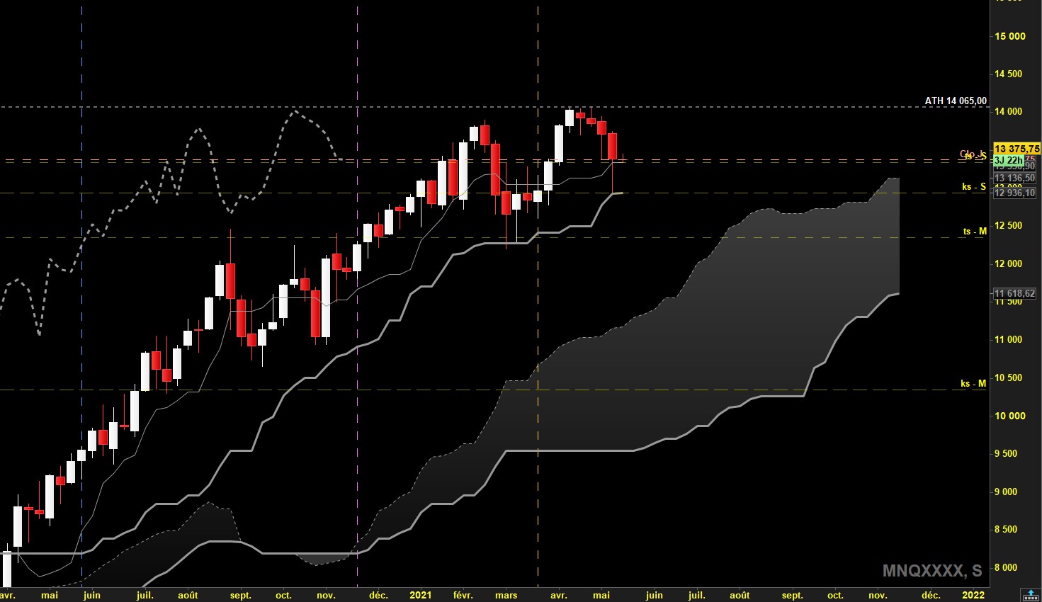 Le nasdaq en hebdo, avons nous bien une couverture en nuage noir, svp.
