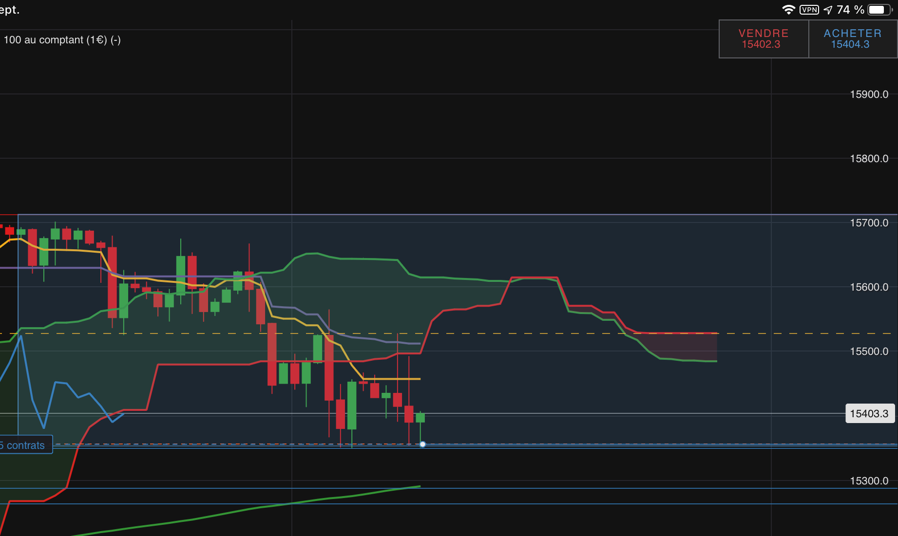 J’ai payé le nq juste avant la close 15355, zone où les prix rebondissent depuis hier en h4 qui sont le plus hauts du 24 août et sur un marteau en m1. Également un plat kijun h4 par projection.