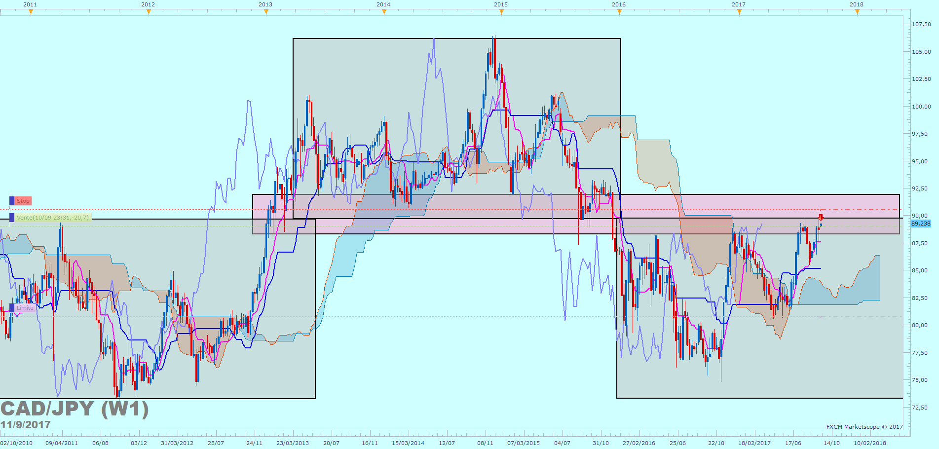Je vais donc vous faire la démonstration d'un plan correctement établi en prenant l'exemple du CADJPY.