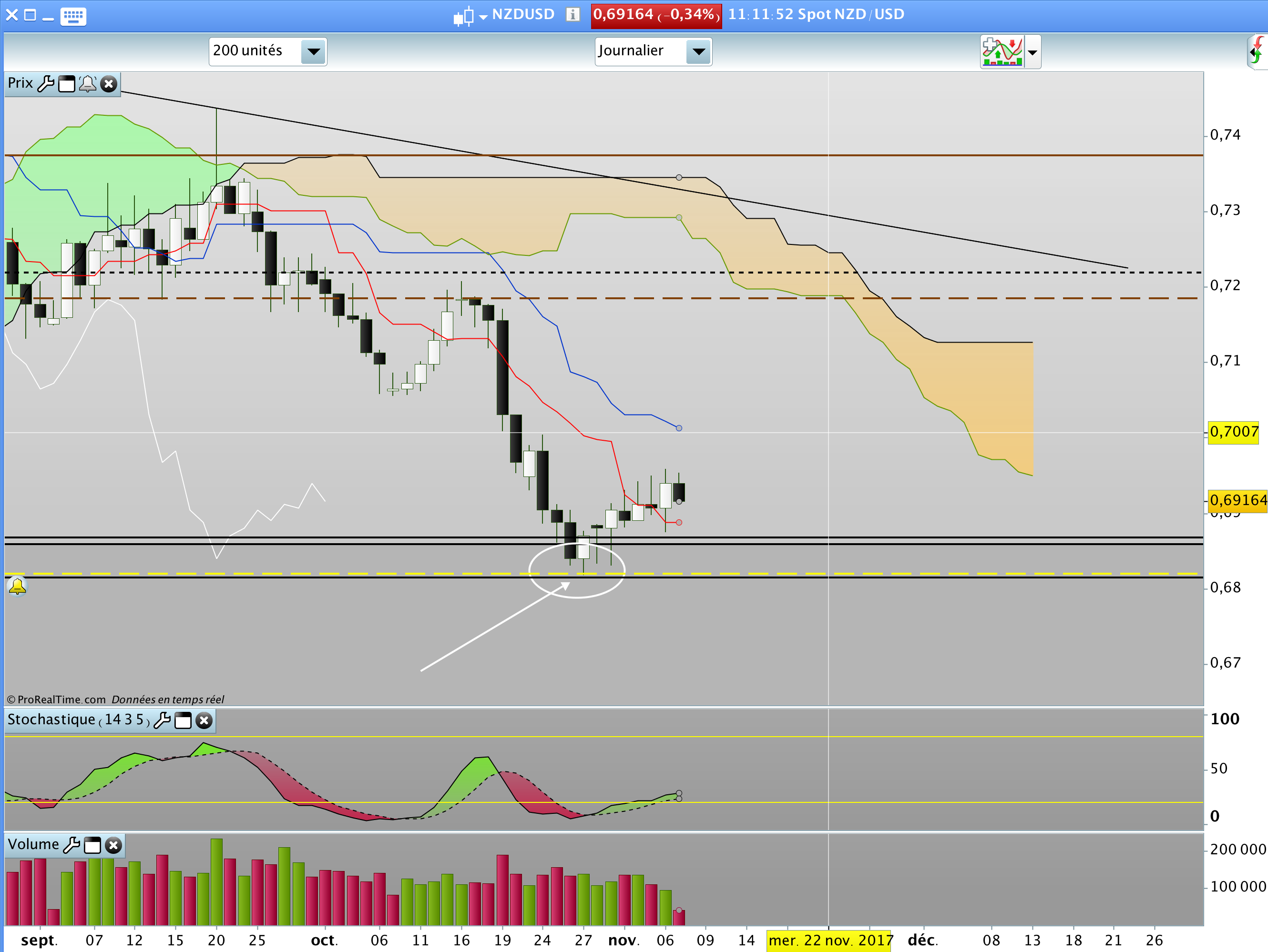 Je vais donc surveiller les chandeliers de retournements sur ces pointillés.