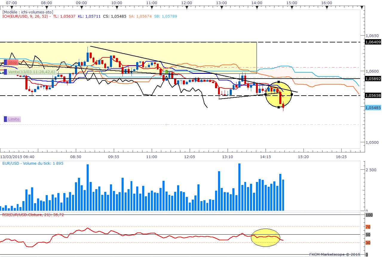 14h15, la bataille intraday pour le support des 1.0565 est enclenchée, si les baissier la perde, il faudra sortir illico !