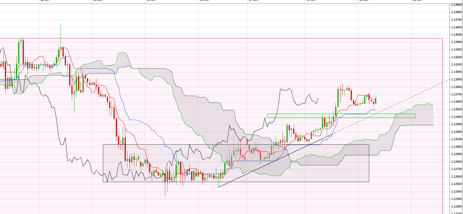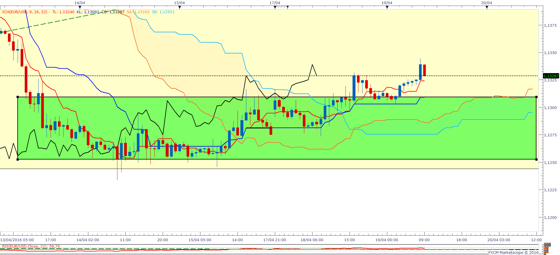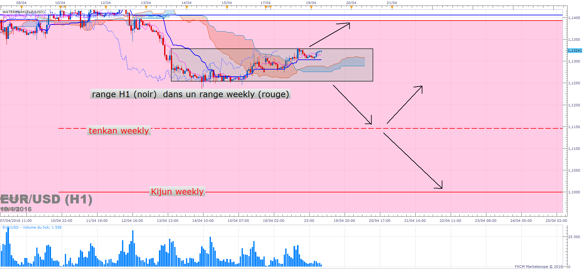 A noter que le range H1 est plus ou moins borné par Kijun et Tenkan daily.