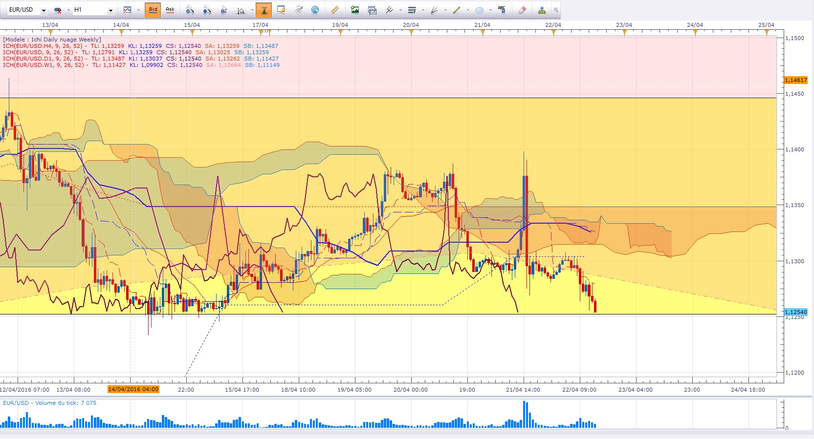 Sauf que le range H1 je ne le délimite pas comme toi, pour moi il est cassé par le haut. Les prix l'ont cassé et le nuage se réoriente