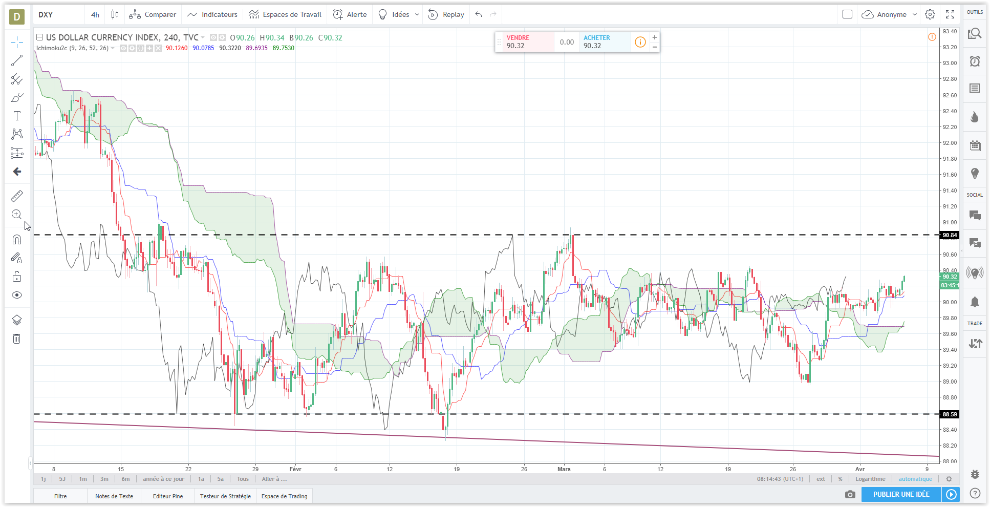 le USDOLLAR, et sur plusieurs unités de temps, je vois beaucoup de marobuzo,de grandes tailles, et peu de miches, les volumes flagrants