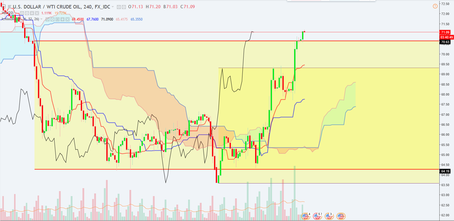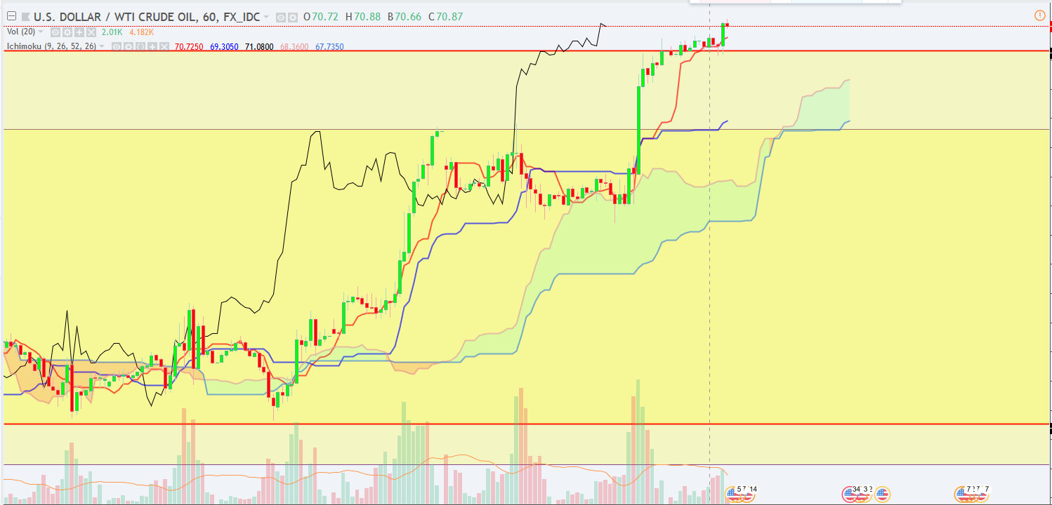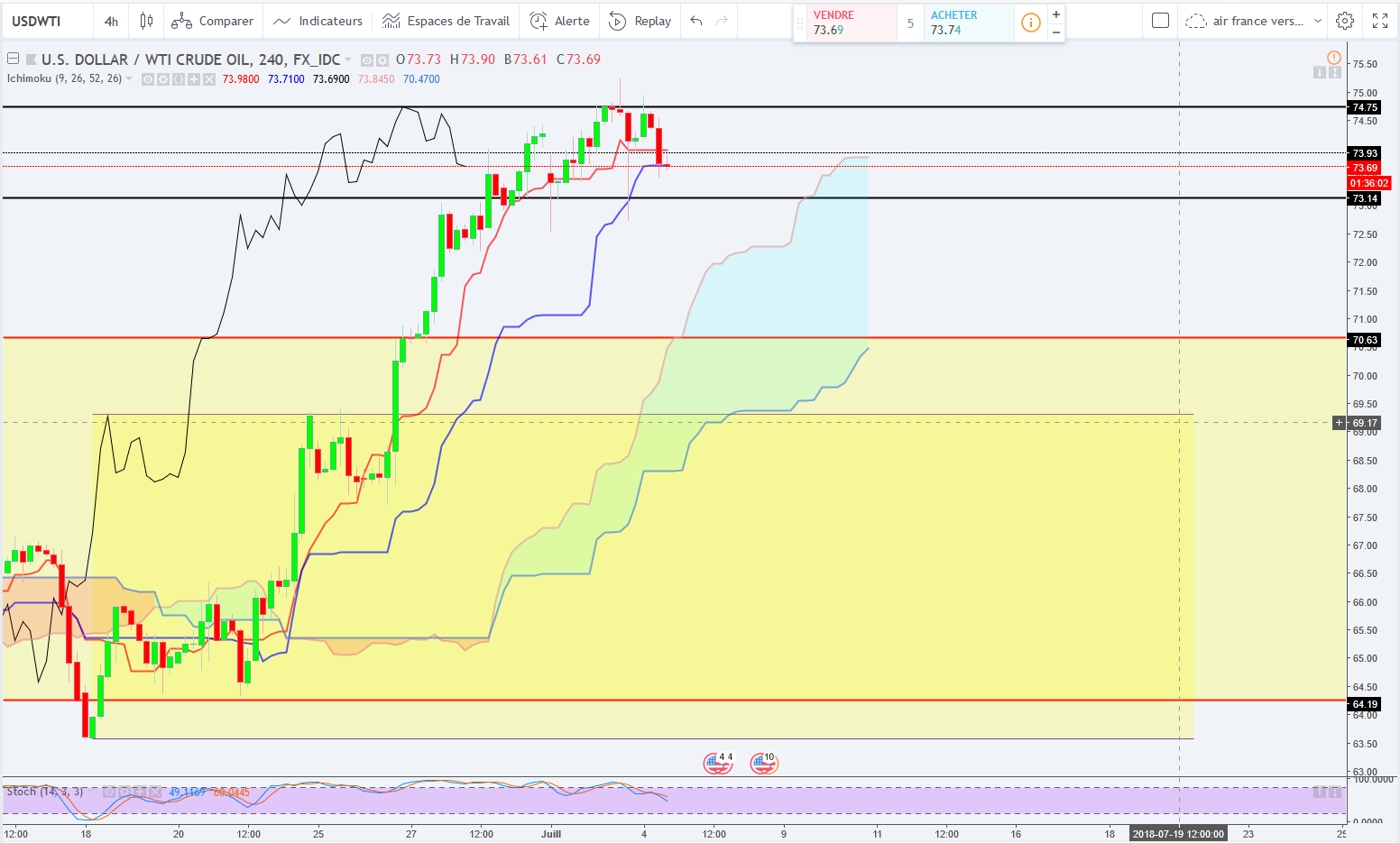 Ce qui amène les prix juste sous une zone de résistance intéressante avec des mouvements impulsifs ces derniers jours avec les réunions de l'OPEP.