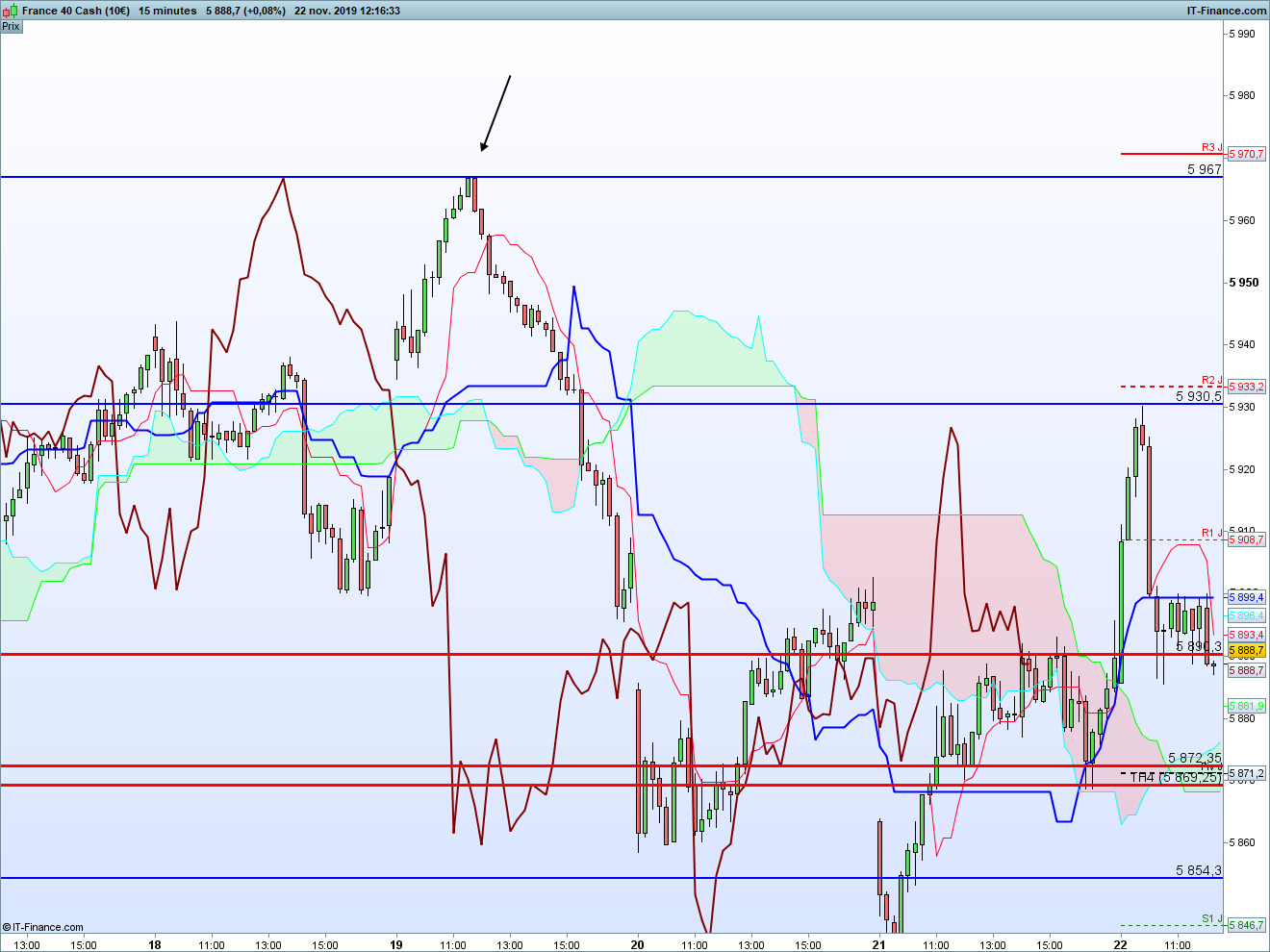 Ce mati l'analyse technique du CAC (future) est ultra facile. Mais attention analyse facile ne veut pas dire trading facile.