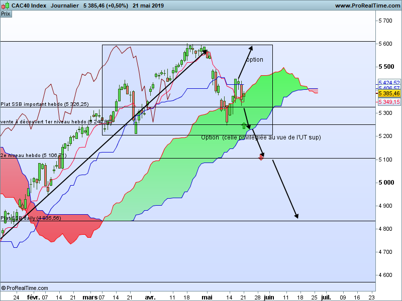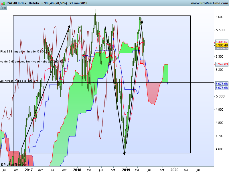 Attendre que les prix cassent à la baisse le niveau important hebdo 5249 alors on peut envisager d'aller chercher en vente à découvert le niveau 5106 qui est le plat SSB en weekly.