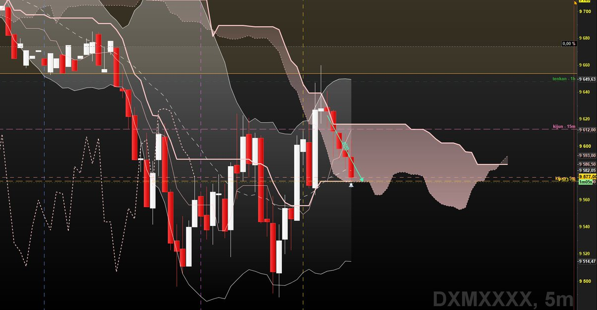 M5: Il y avait un ancien range qui a été cassé, mais maintenant la kijun et la tenkan semble tenir la baisse, s'il casse la baisse continue, mais il semble faire résistance