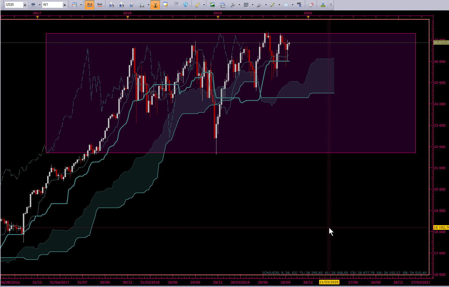 Bonjour, je ne trade pas les indices sauf en scalping, mais même pour cette discipline il est indispensable d'avoir un plan, donc d'analyser. voici une analyse swing même si je ne suis pas un spécialiste et que je pense que la politique influe trop pour se fier aux analyses aveuglément.