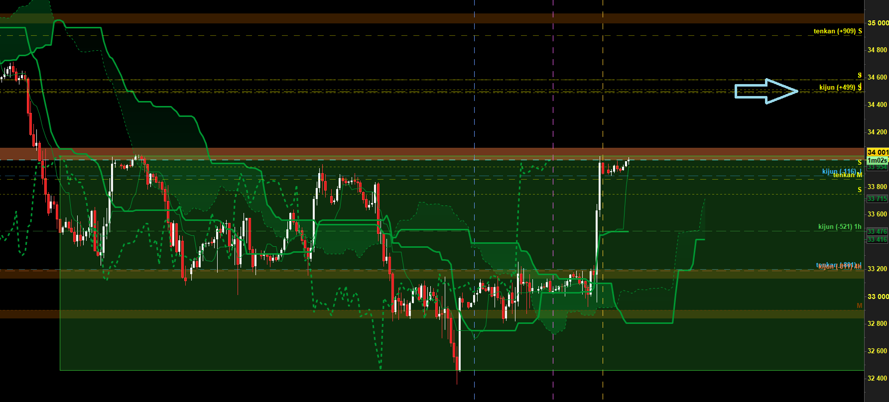 Ils ont rebondi sur la ZE et tentent le passage de la zone de prix violette en meme temps que la Chikou.