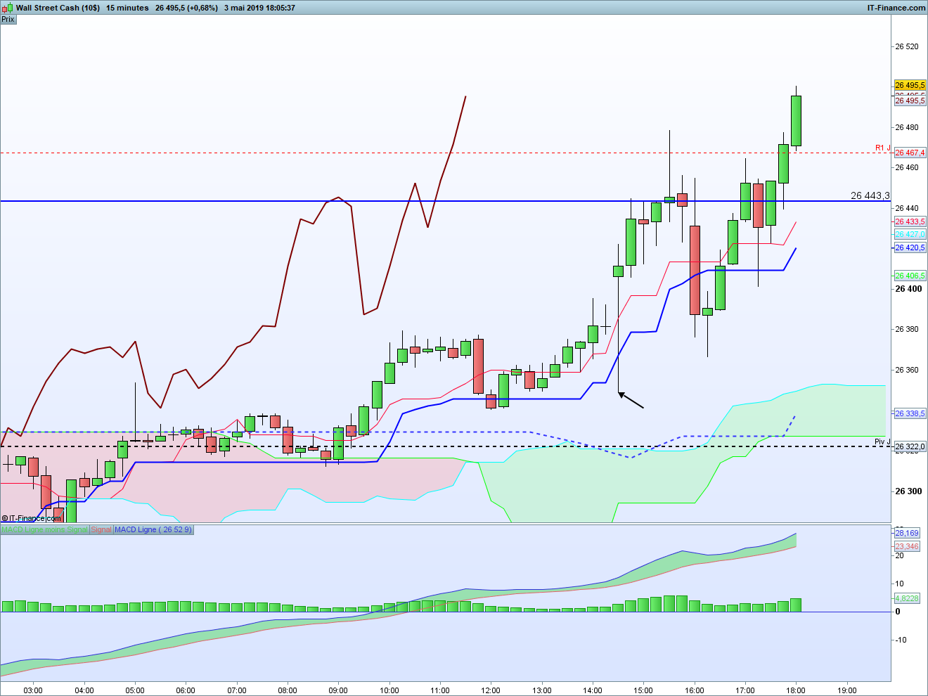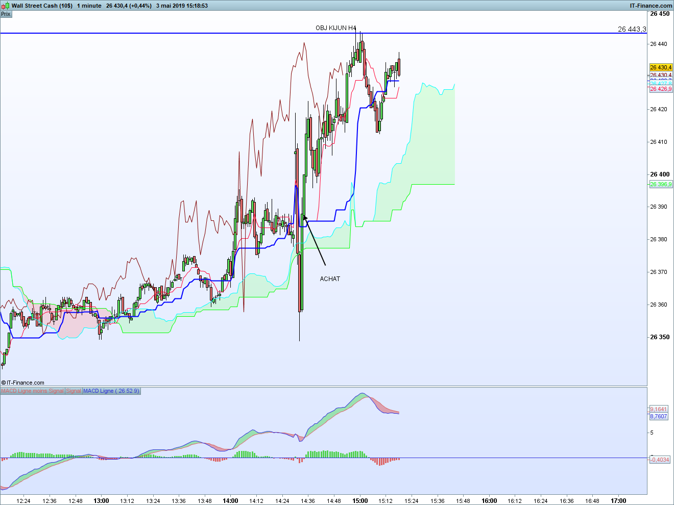 je viens de rentrer en position acheteuse sur US30 à 26849,05 stop 26760,00 TP 26925,00 plus haut du 03/10/2018