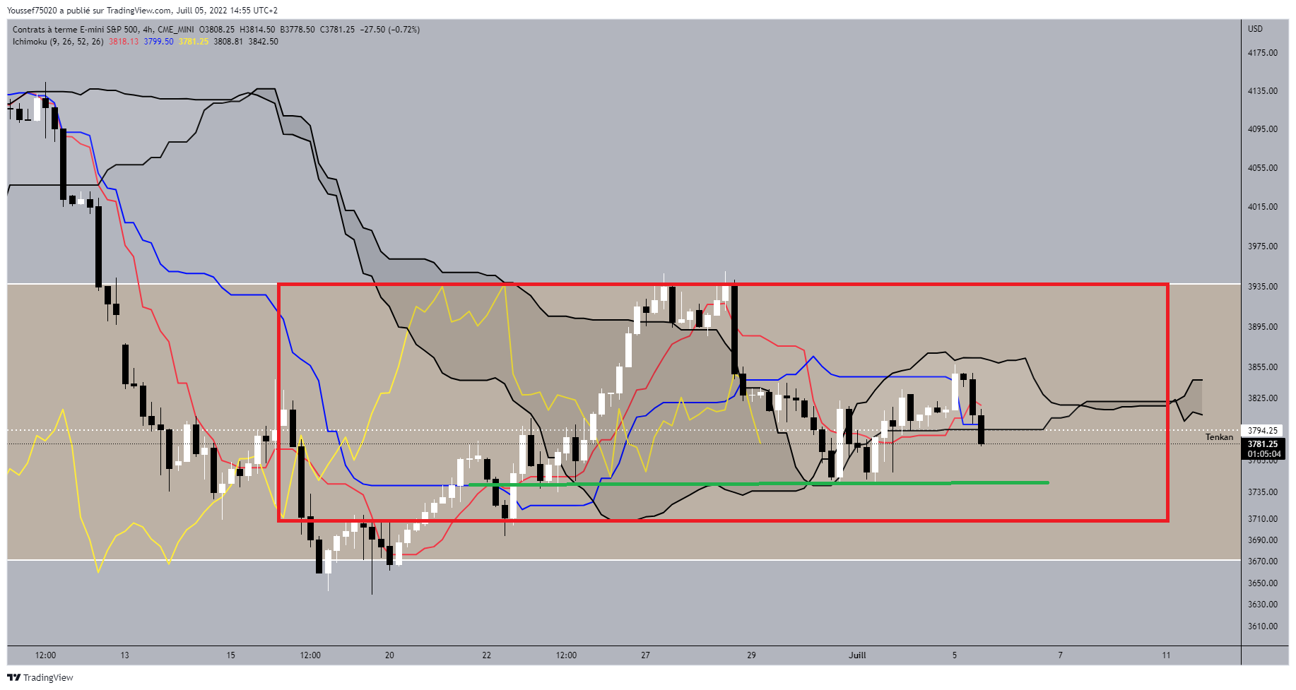 m5: range dans lequel on retrouve la kijun m15 et la tenkan hebdo. sa cassure devrait donner le sens à venir: