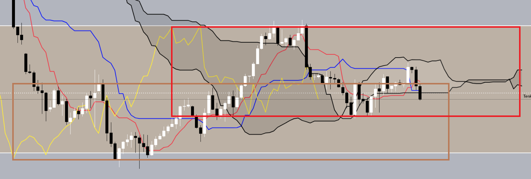 . Les prix sont coincés entre la Tenkan et Kijun.