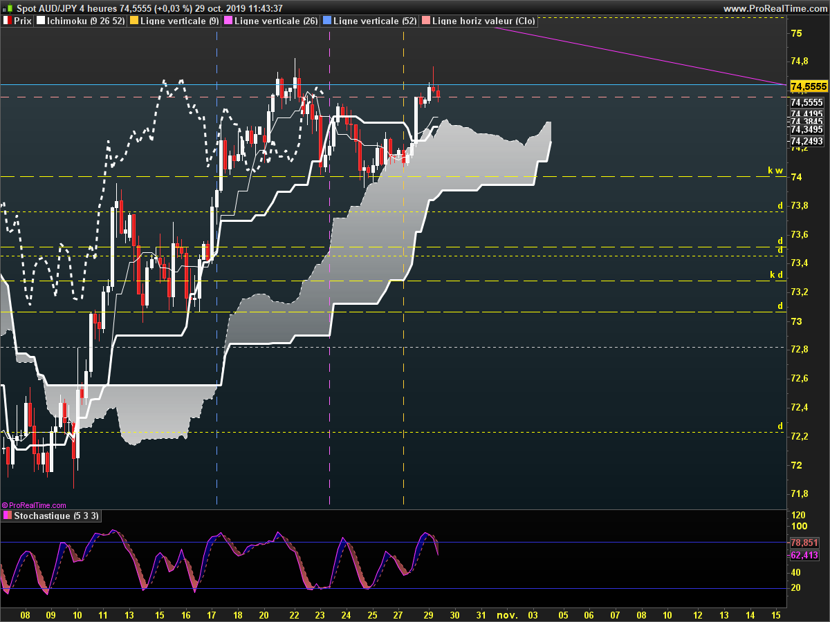 Plan: short avec 4 objectifs successifs: la kijun annuelle à 74.0 qui fait office de borne basse du range H2 (on voit bien le rebond des prix en H4 sur ce niveau), 73.52 (SSB pour chikou daily), 73.3 (kijun daily qui va rester plate) puis 73.00 (SSB daily)