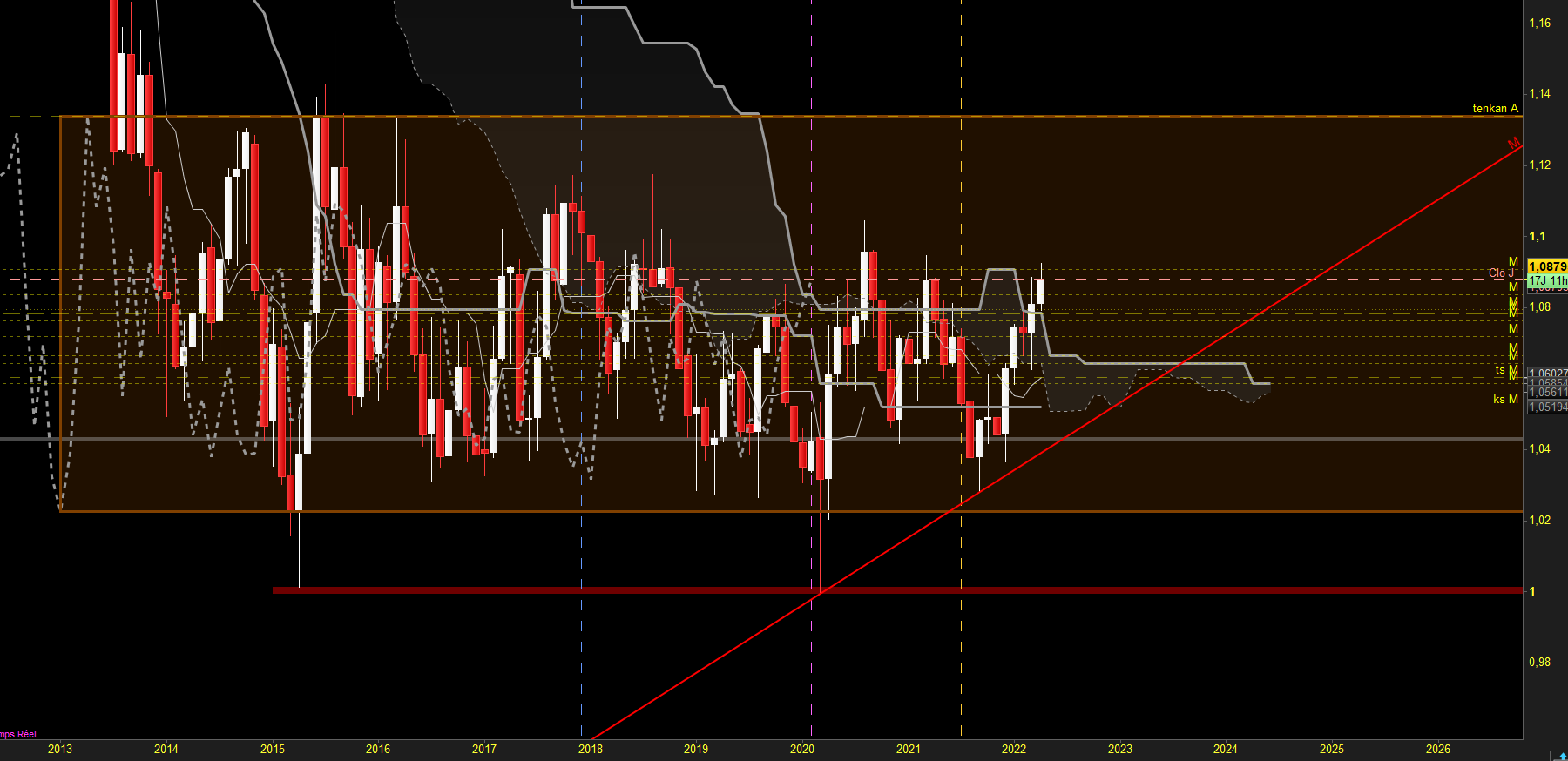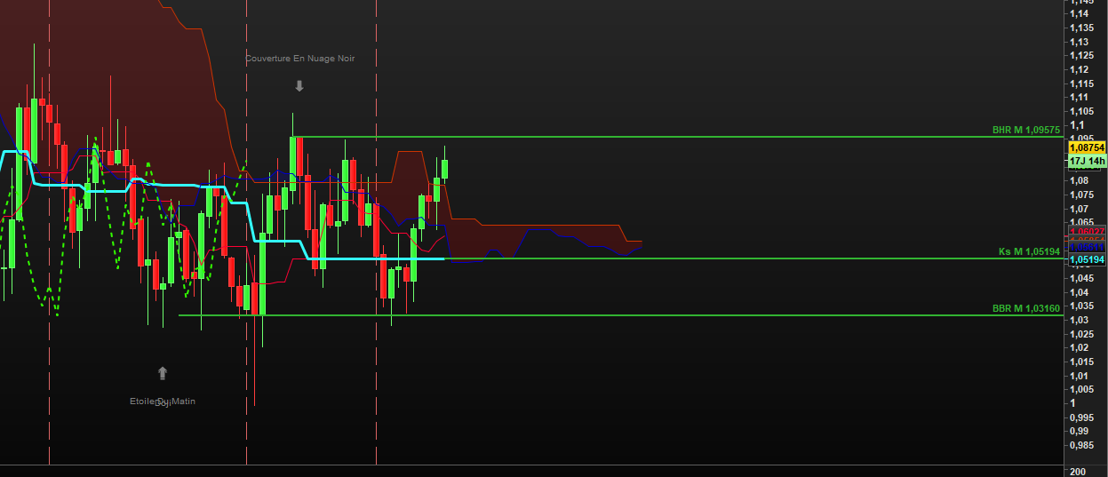 je rajouterai que la borne basse du range H1 = la tenkan daily + la SSB sous chikou mensuelle: c'est donc un support important.