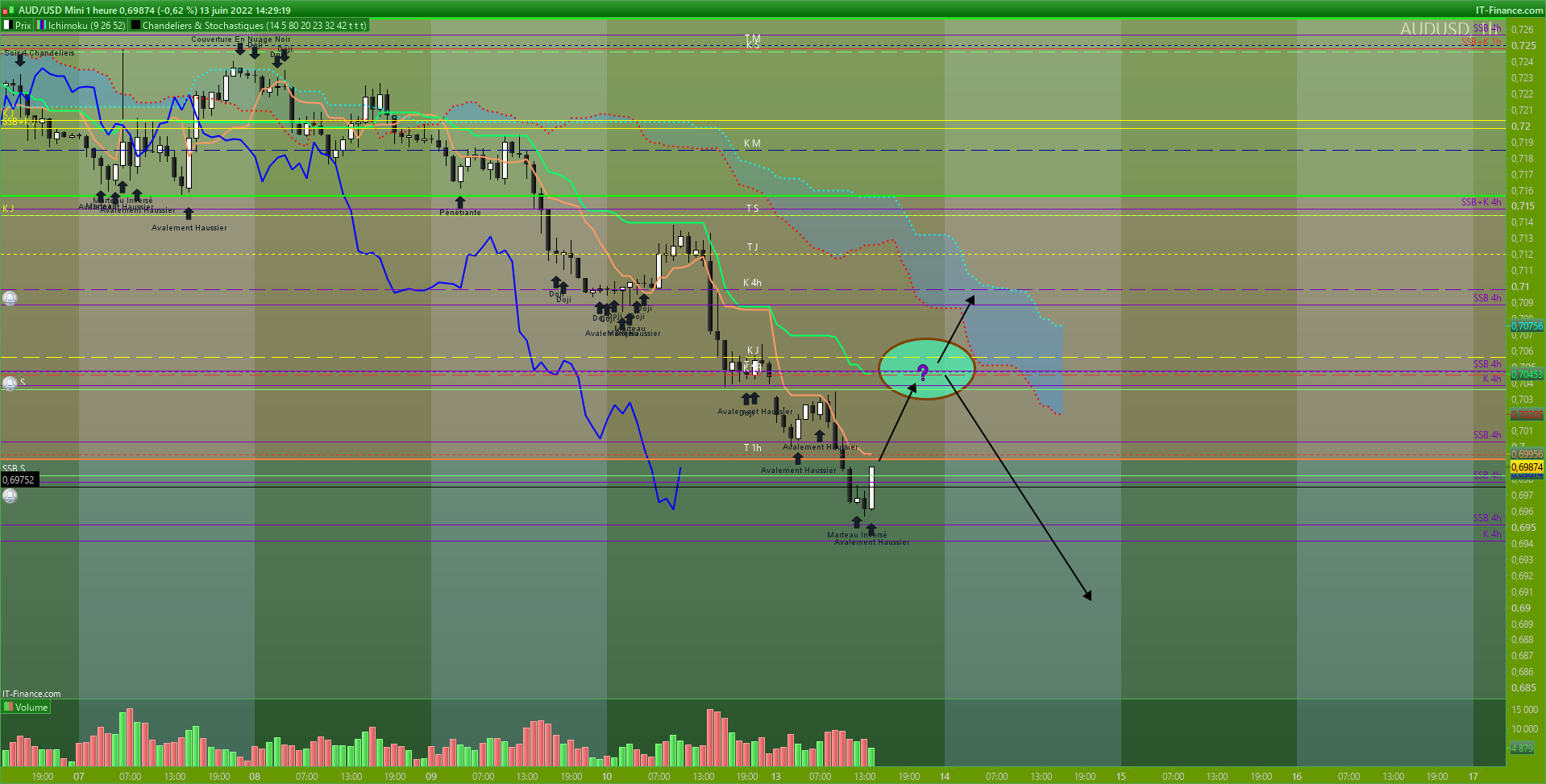 Les prix se maintiennent sous la kijun de cette meme UT pour l'instant.
