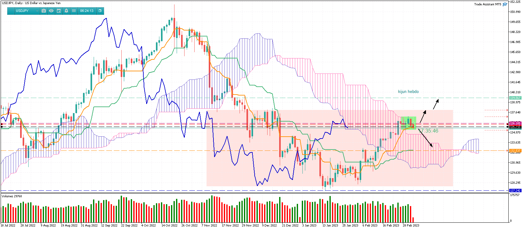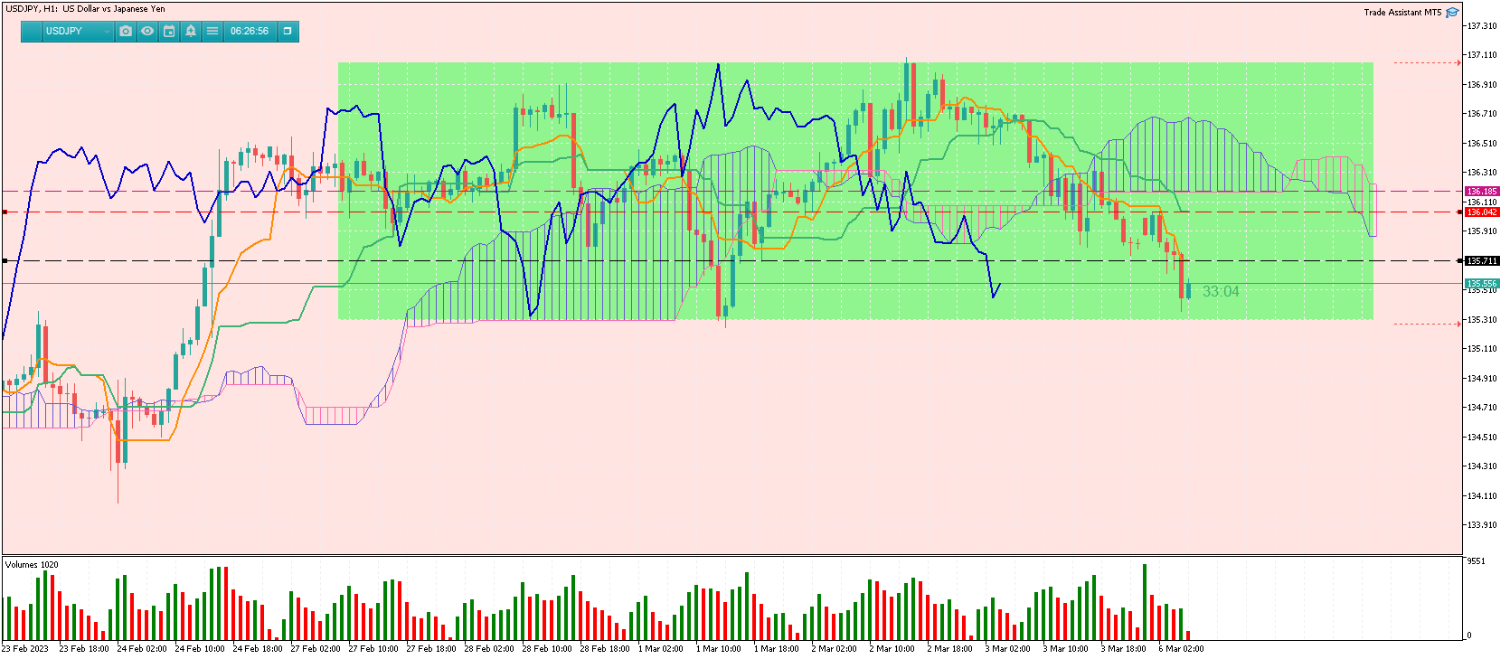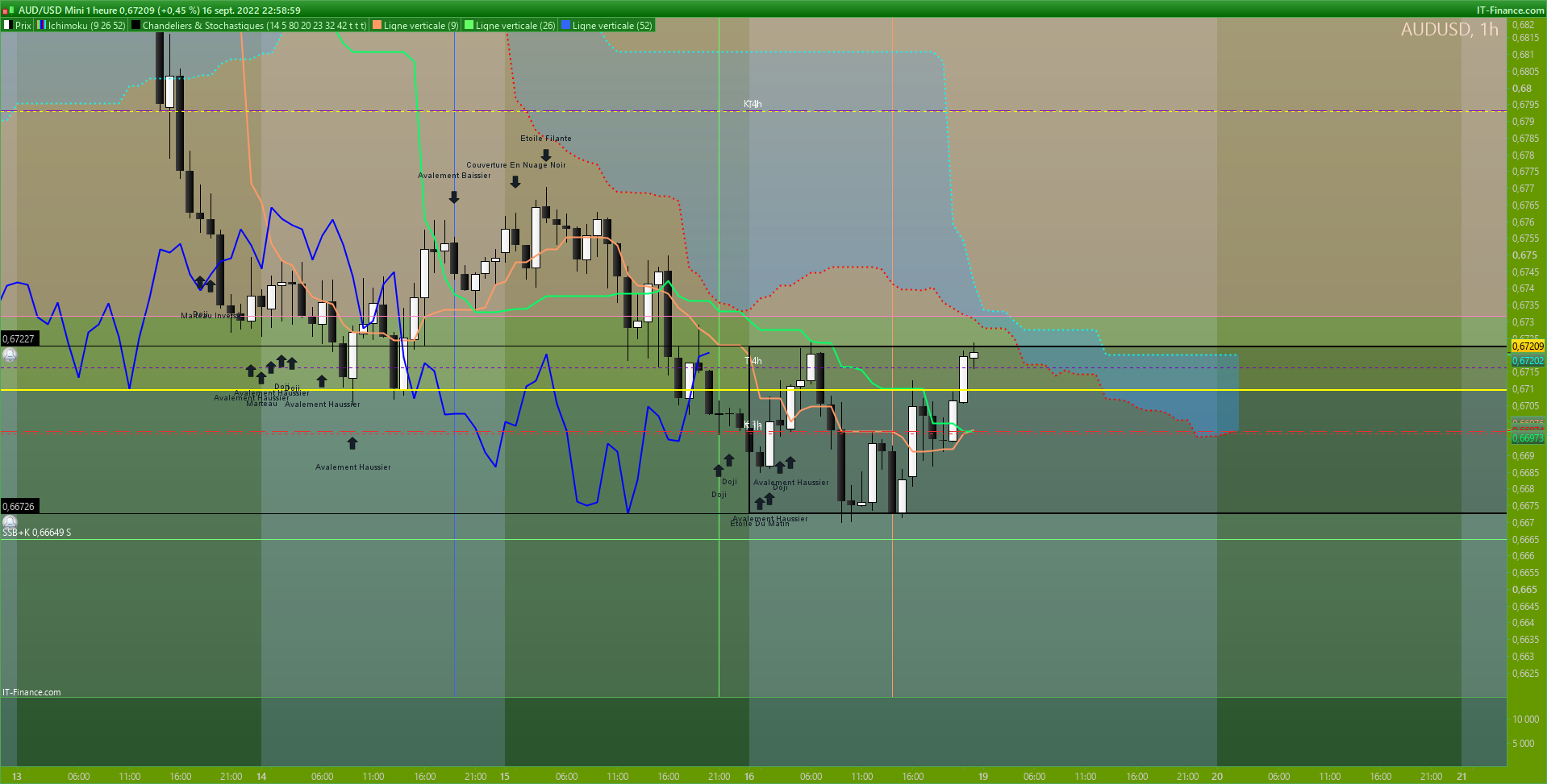 à l'instant, suite à l'ouverture des marchés, un gap baissier est apparu franchissant de nouveau la tenkan à la baisse.