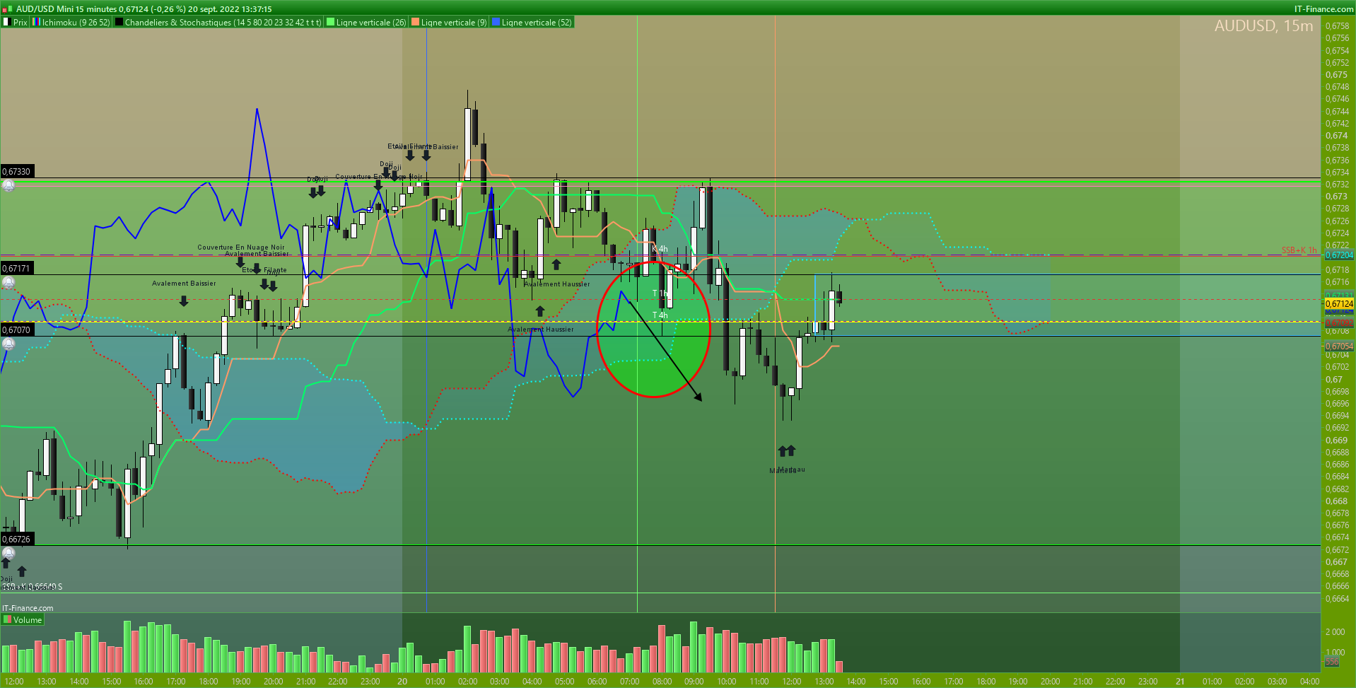 M15 : Range établi sur cette UT avec la Kijun H1 en ZE.