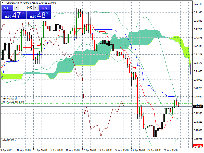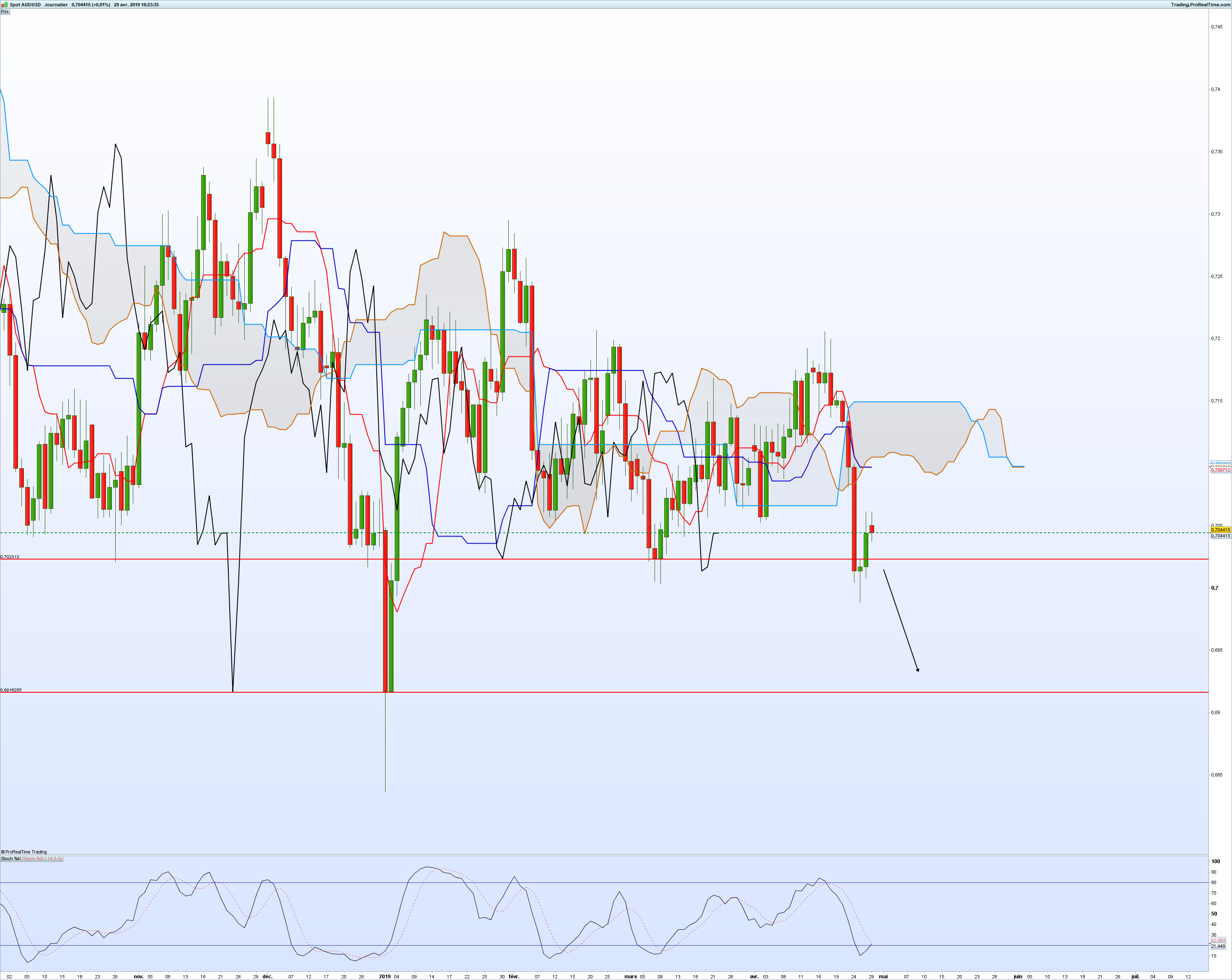 Je shorte l'aud à 0.7052 et je vise je ne sais pas quel niveau. Au moins un retour vers 0.7. On est sous la kijun H4. Qu'en pensez-vous ?