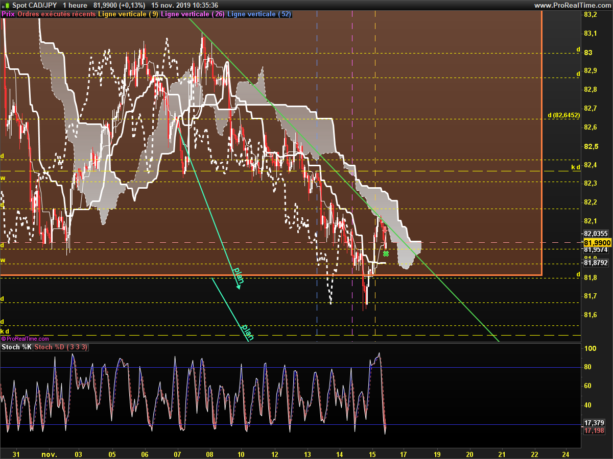 Bonjour à tous, dans le plan du 6 novembre dernier le 1er TP était la kijun daily/tenkan hebdo, celui-ci a été atteint. cette kijun est remonté ce jour et les prix sont en -dessous de ce fort support. On note aussi que la tenkan est assez proche