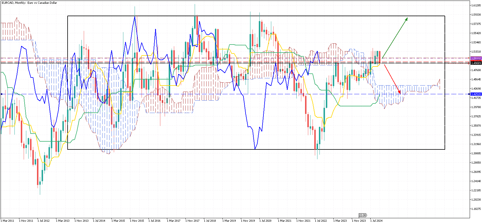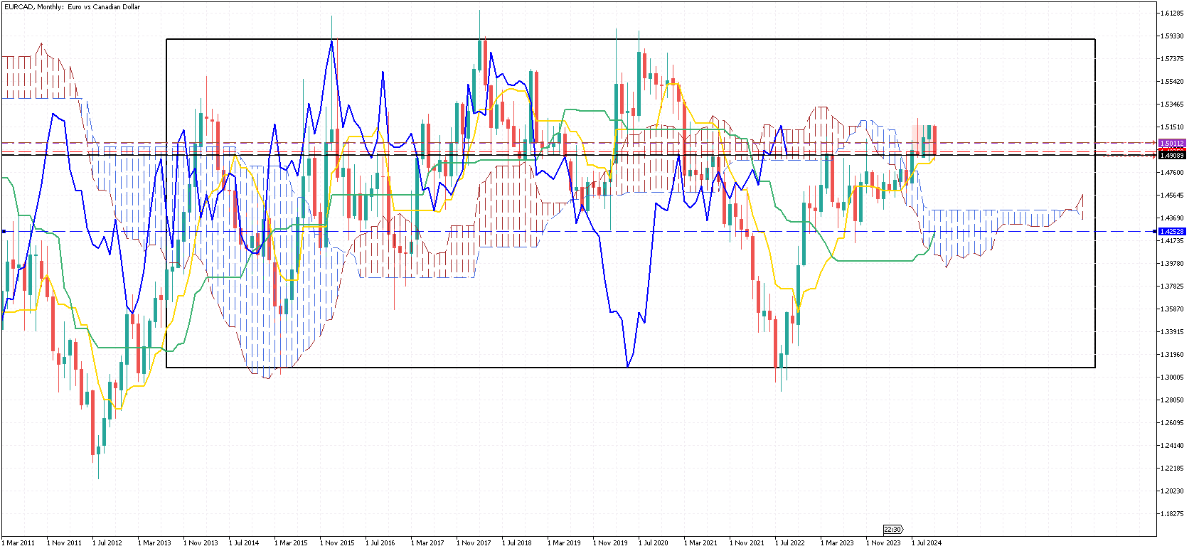 Annuel :Sans IchimokuAvec Ichi : Notez la position de la Tenkan et de la Kijun.