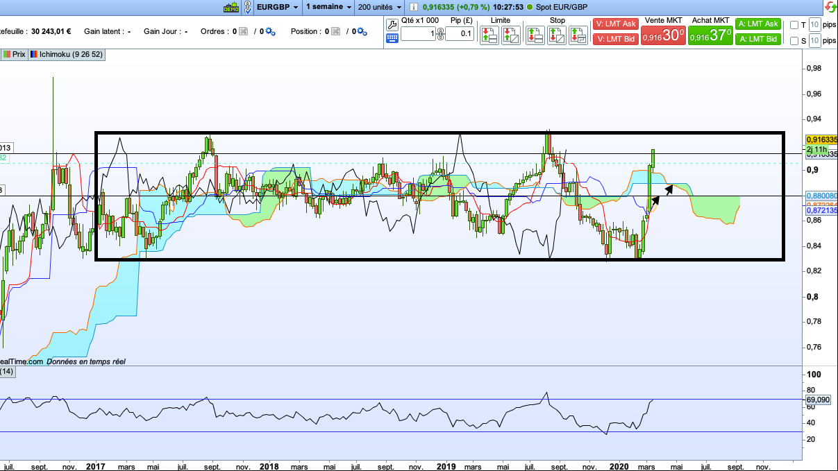 Bonjour, je vais te répondre suivant la formation de Patrick qui n'utilise qu'ichimoku, pas le rsi.
