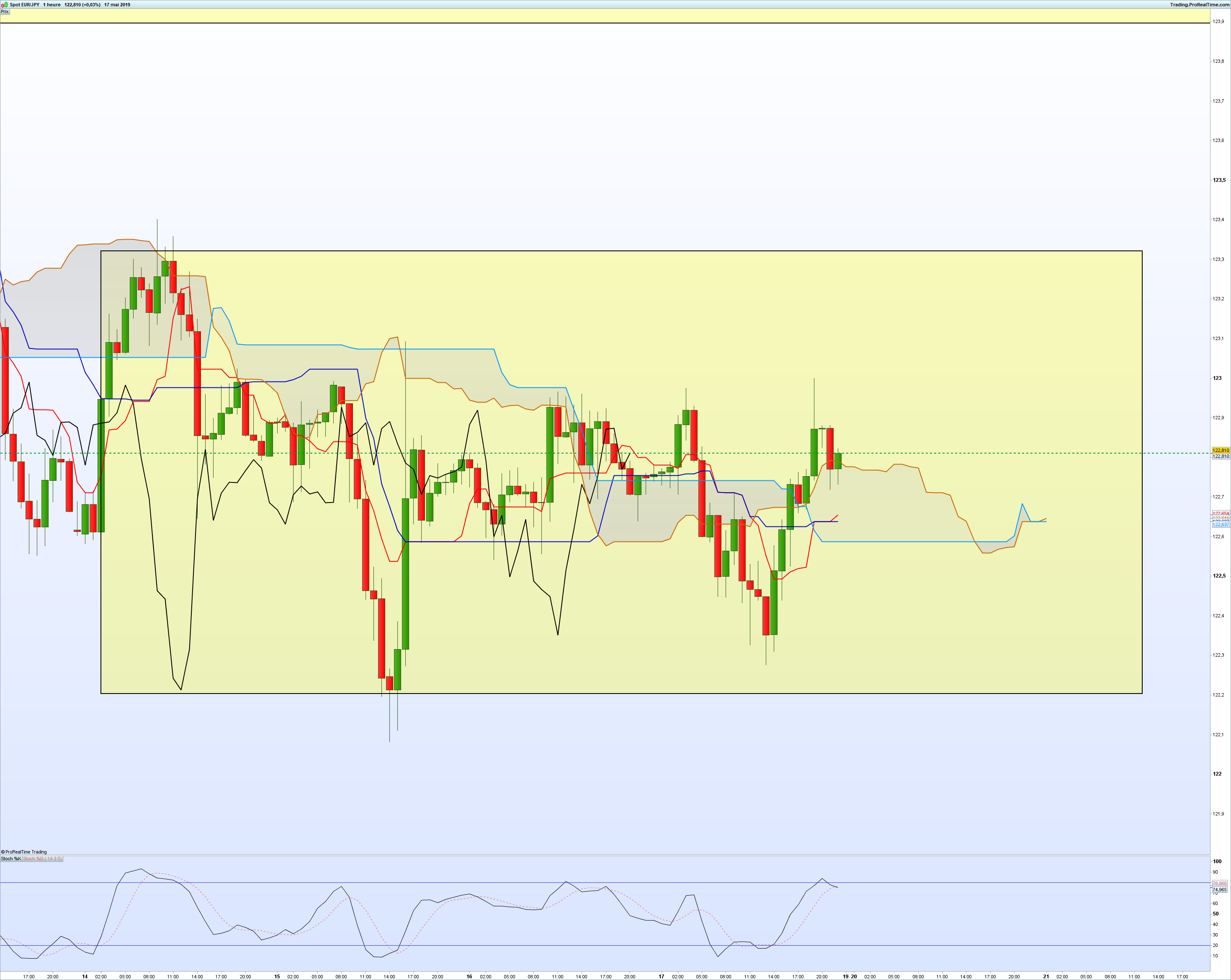 PLAN: en cas de cassure de kijun H1, short avec le support mensuel en objectif. On placera le stop au dessus des derniers plus hauts.