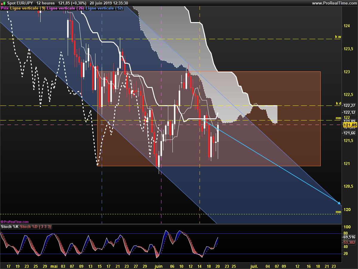 L'ellipse jaune correspond à un plat kijun, je pense que le repli suite à la cassure du range hebdo se fera sur cette zone.