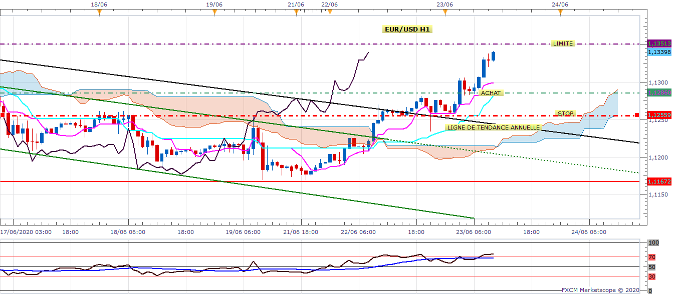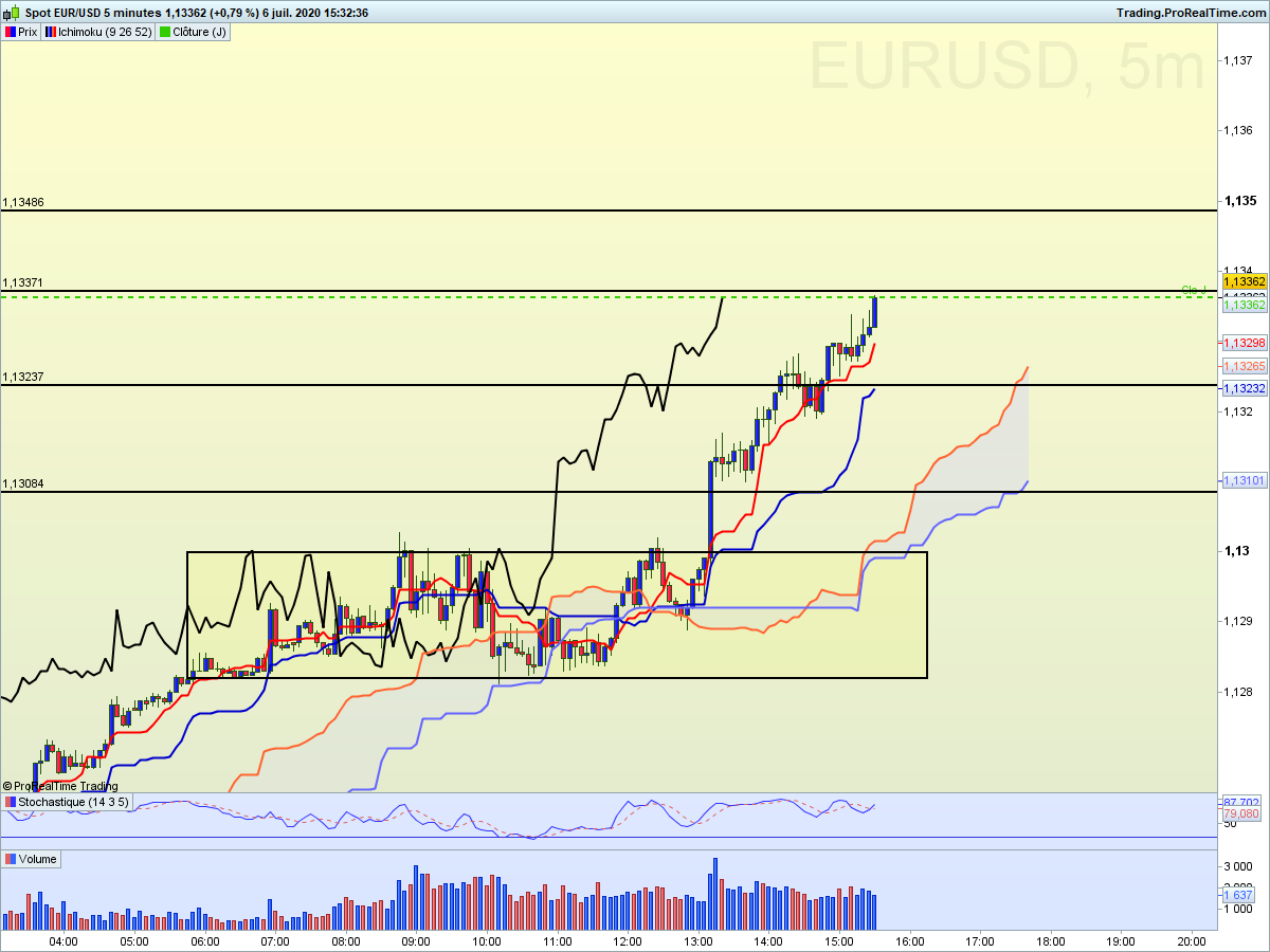 Bonjour Schoko j'ai acheté EUR/USD ce matin après rebond sur tenkanj 'espère bien toucher ma limite ce soir