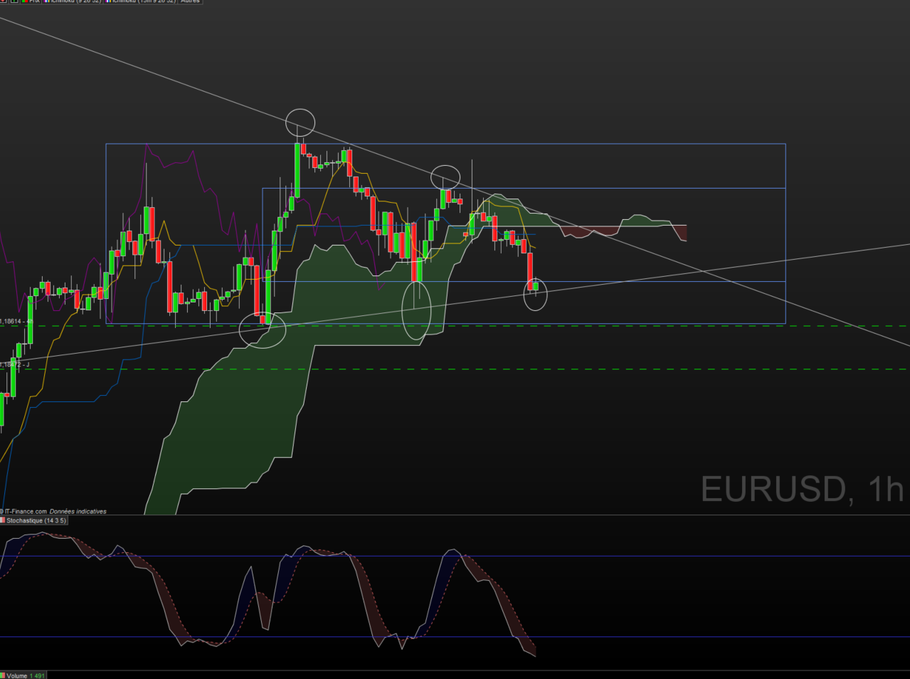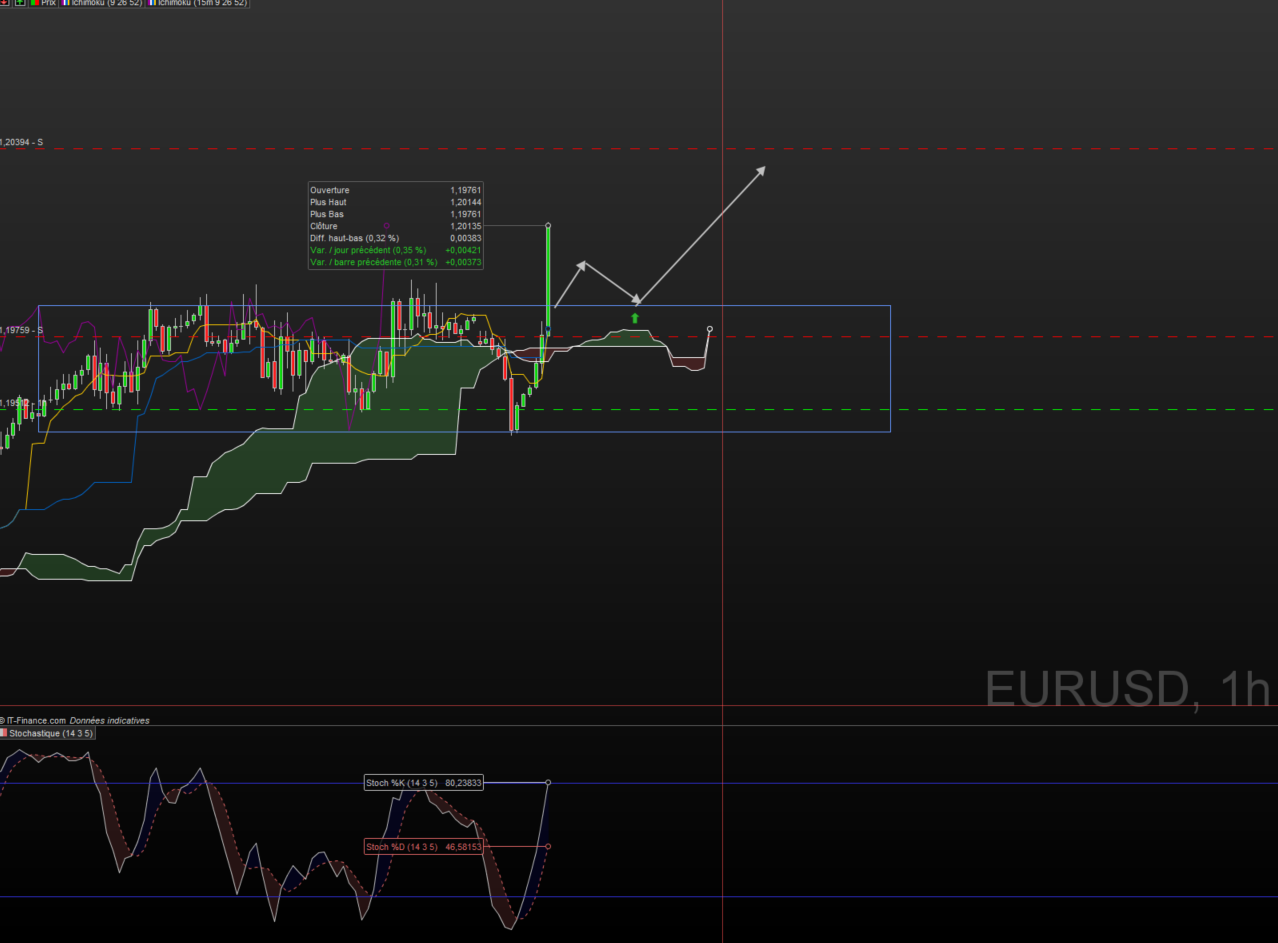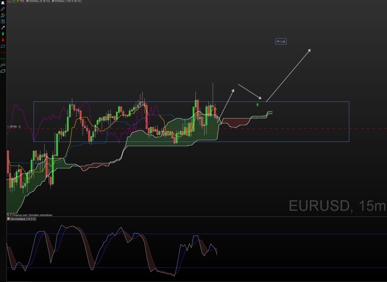 Simple, si et uniquement si cassure de la résistance des 1,1950 et après trhowback, j'envisage (et cela n'engage que moi je ne donne aucun conseil en investissement et ne partage pas de signaux de trading) d'entrer pour aller chercher les 1.20