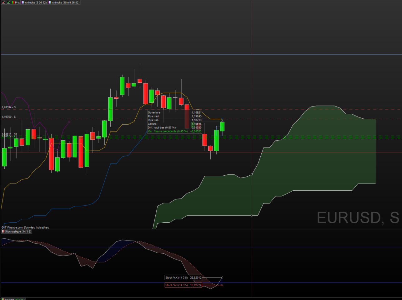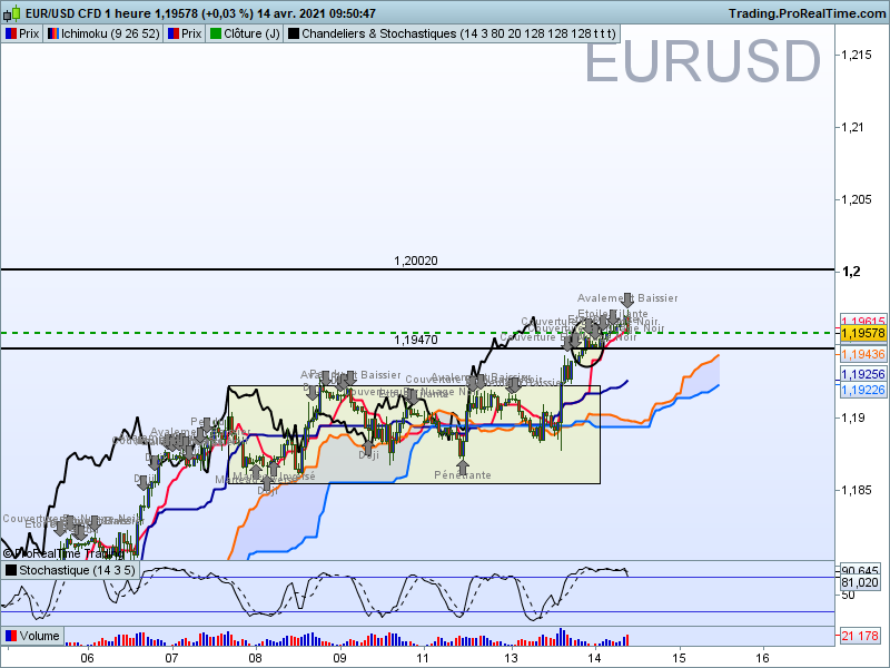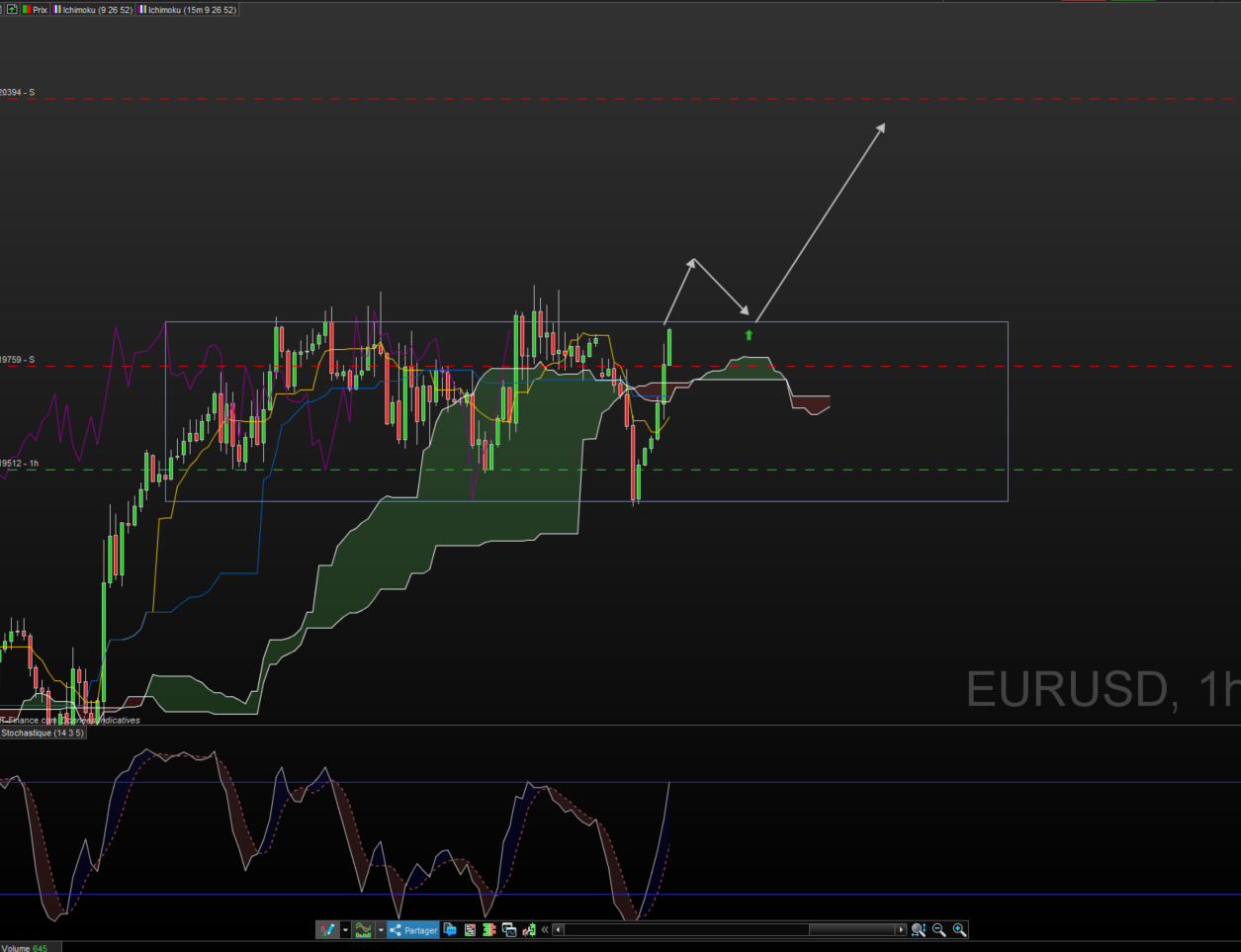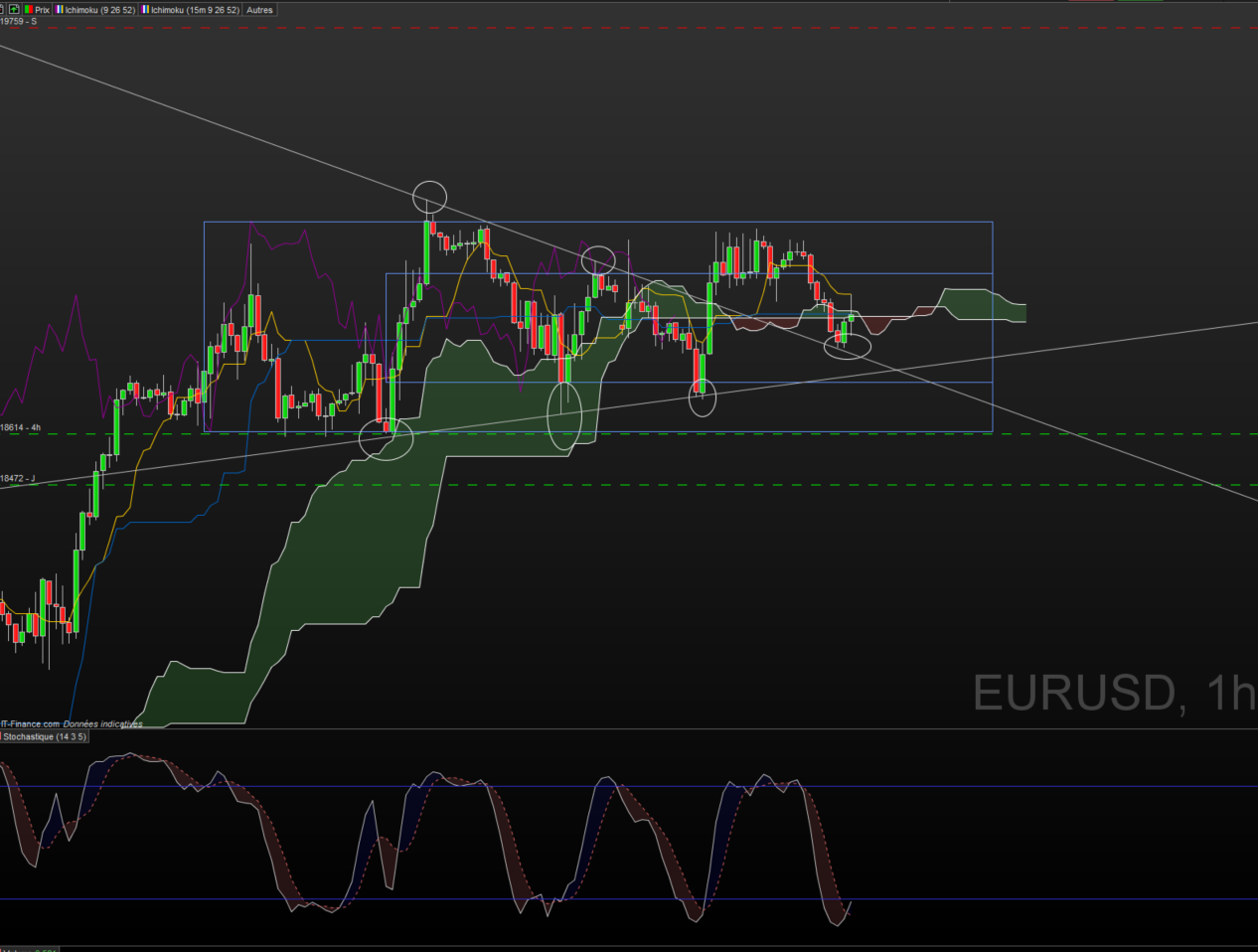 Lundi 12 avril, lors de ma revue de marché Ichimoku consacrée au Forex et Indices, j'ai construit un plan de trading Intraday pour la paire EURUSD